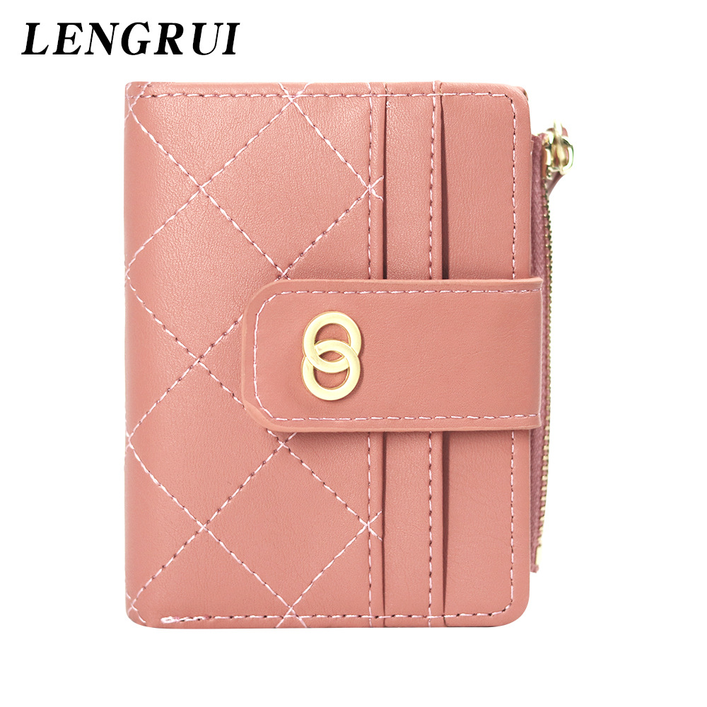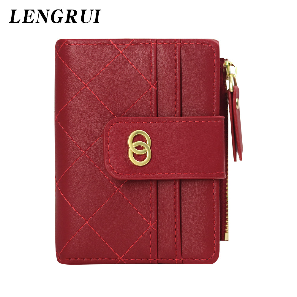LENGRUI 버클 세로 스타일 여성 한국어 버전 멀티 카드 슬롯 짧은 동전 지갑 카드 가방 작은 지갑 지퍼스토어 가기