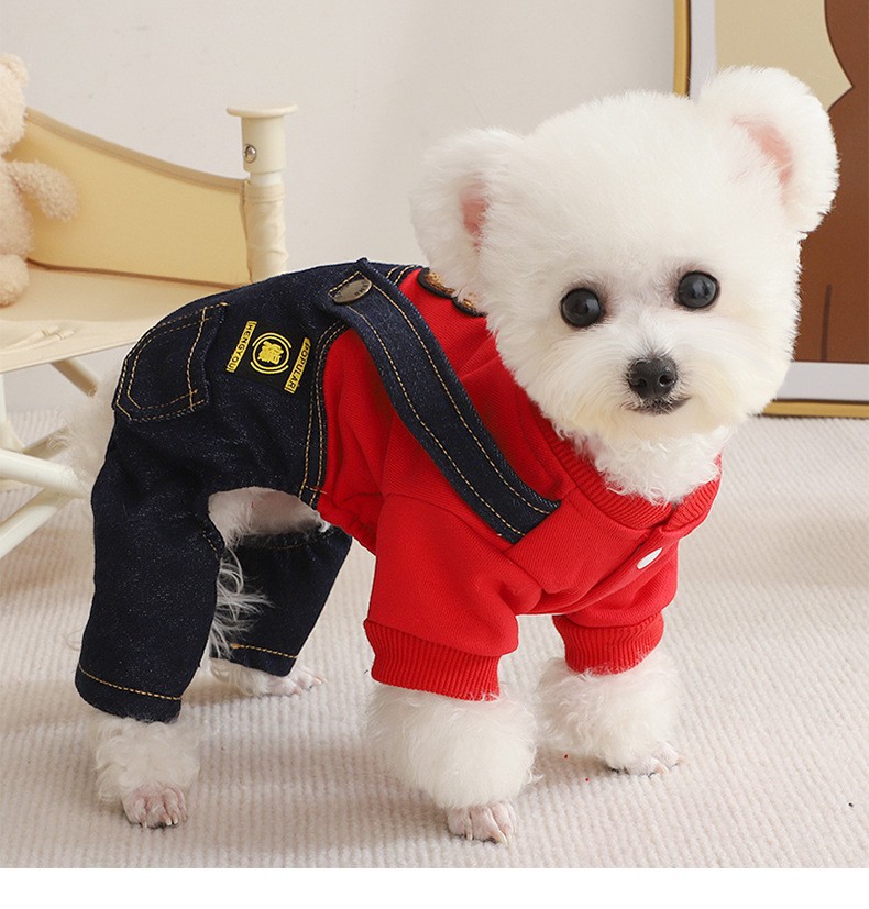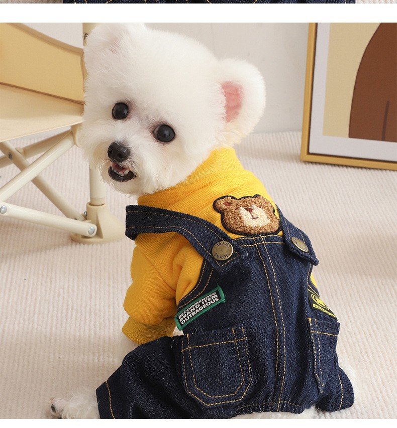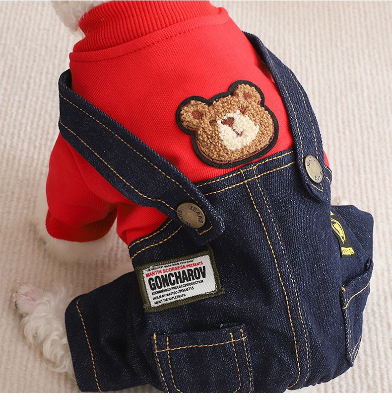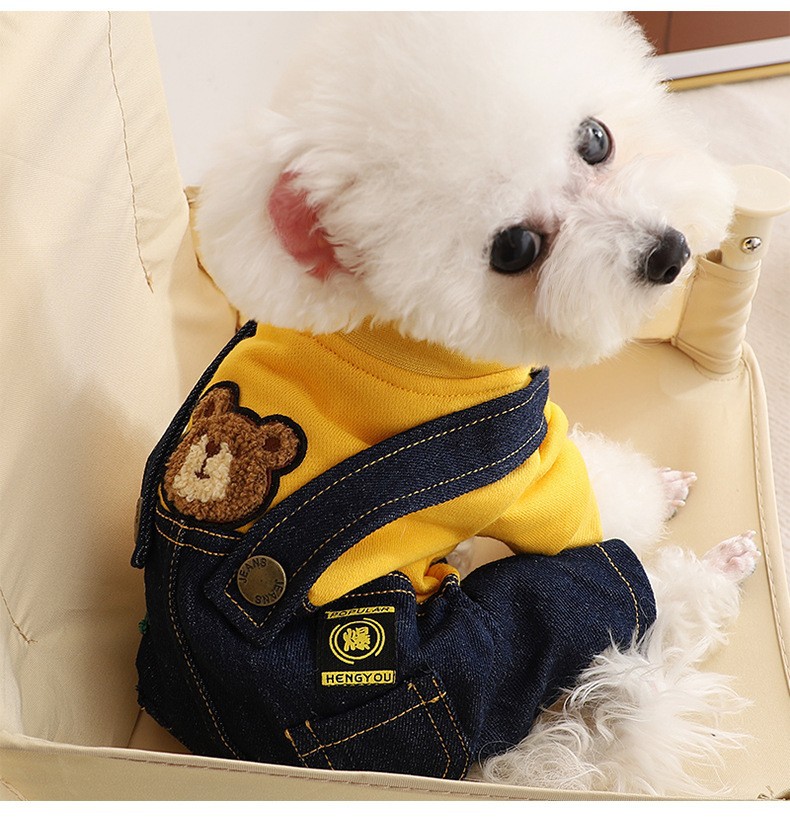테디 독 옷 가을과 겨울 의류 작은 강아지 슈나우저 비미 베어 네 다리 봄과 겨울 가을 스트랩 바지