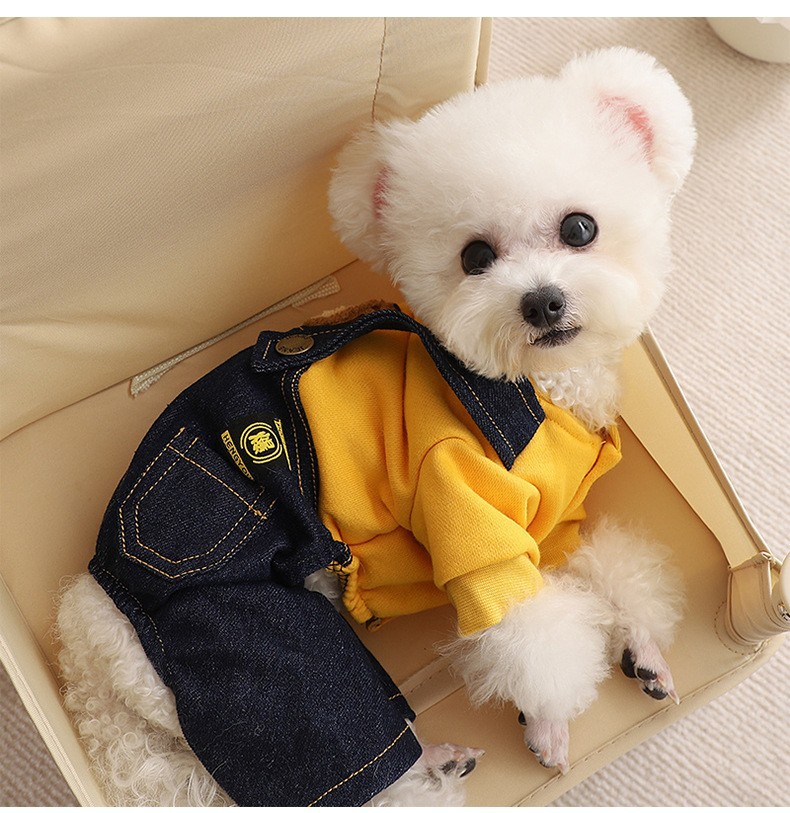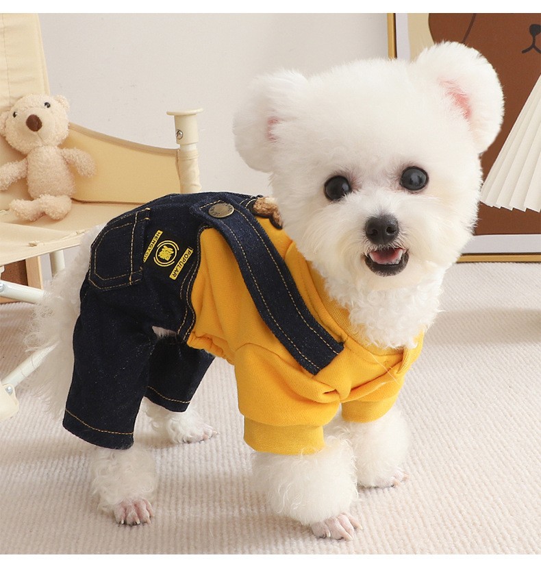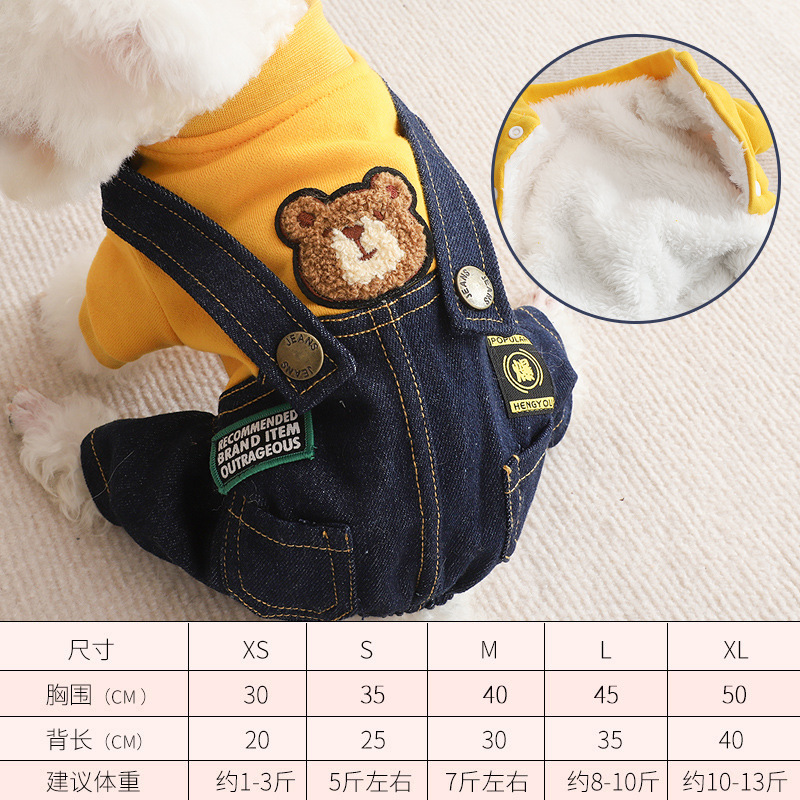 테디 독 옷 가을과 겨울 의류 작은 강아지 슈나우저 비미 베어 네 다리 봄과 겨울 가을 스트랩 바지스토어 가기