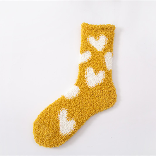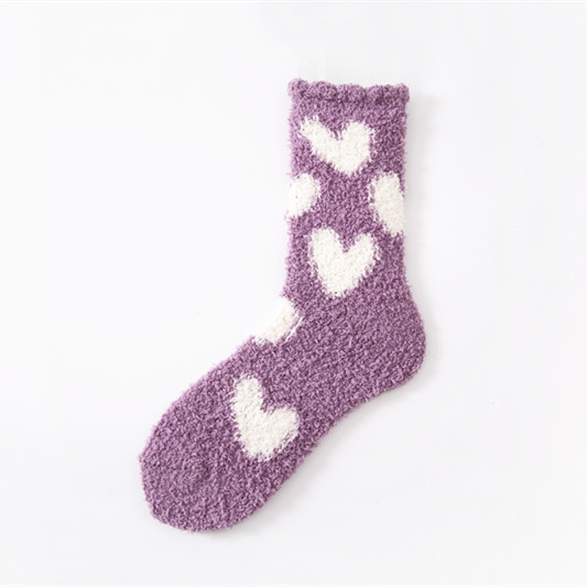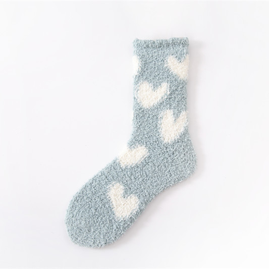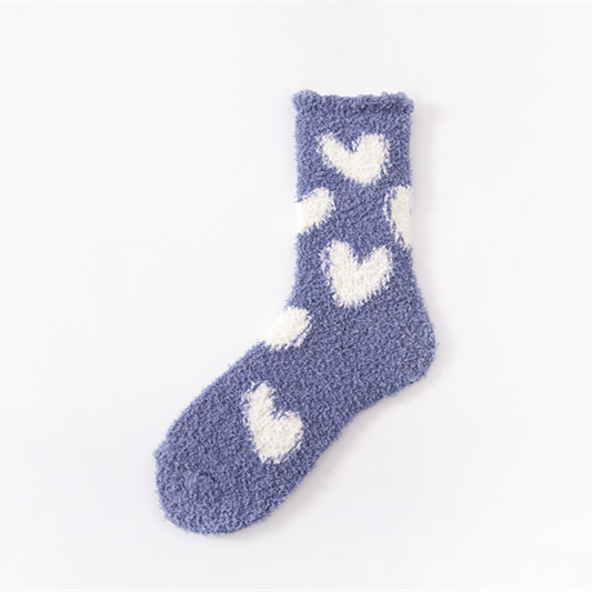 21 가을과 겨울 산호 벨벳 양말 여성용 보풀이없는 기모 두꺼운 귀여운 사랑 양말 패턴 바닥 양말 도매