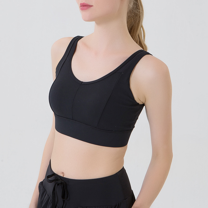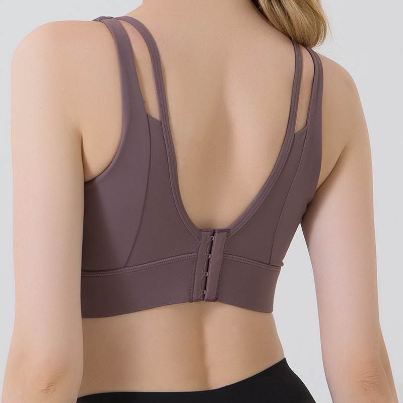 아마존 플러스 사이즈 요가 속옷 여성용 백 버튼 착용하기 쉽고 벗기 쉬운 V-백 스포츠 피트니스 브라 고정 컵