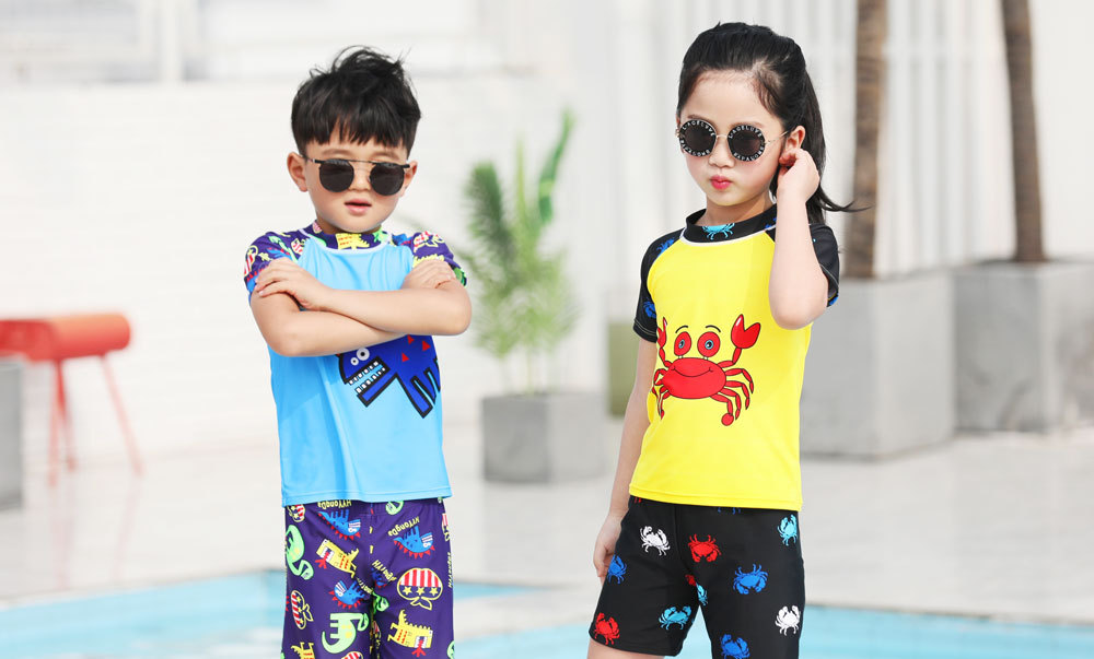 어린이 수영복 소년 원피스 만화 속건성 수영복 대형, 중형 및 소형 어린이 복서 해변 자외선 차단제 아기 소년 수영복스토어 가기