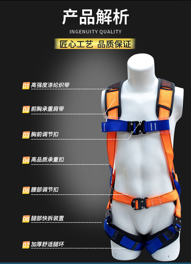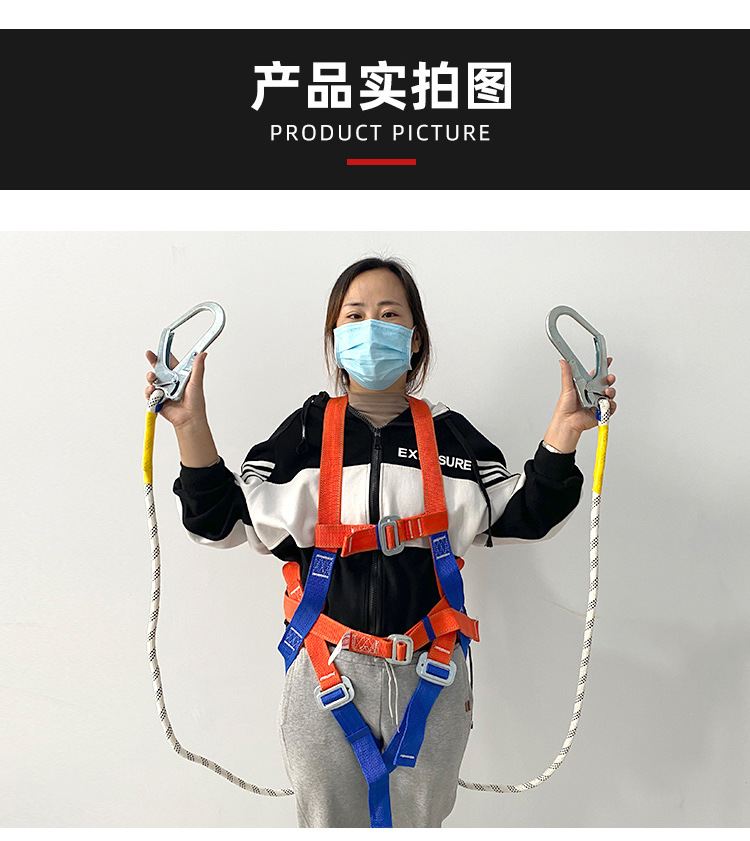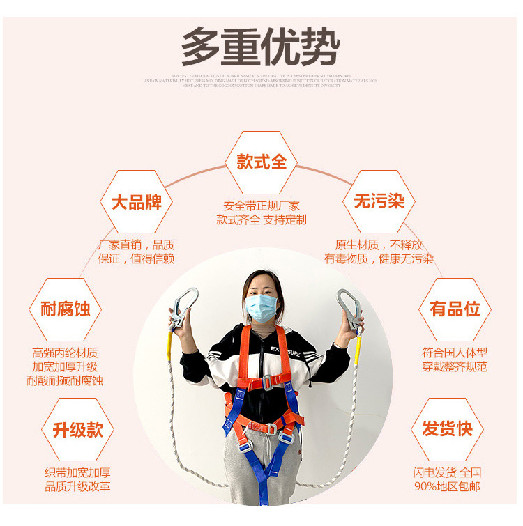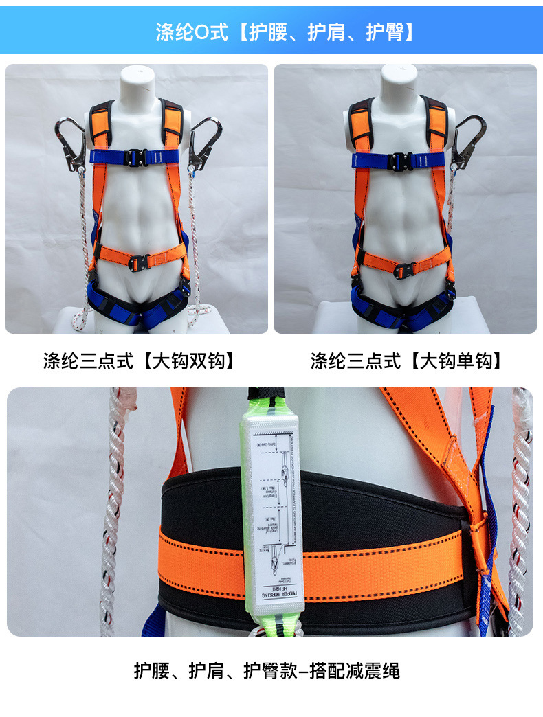 고고도 안전 벨트 안전 로프 내마모성 폴리 에스테르 5 점 3 점 안전 벨트 고고도 작업 안전을 등반하는 암벽