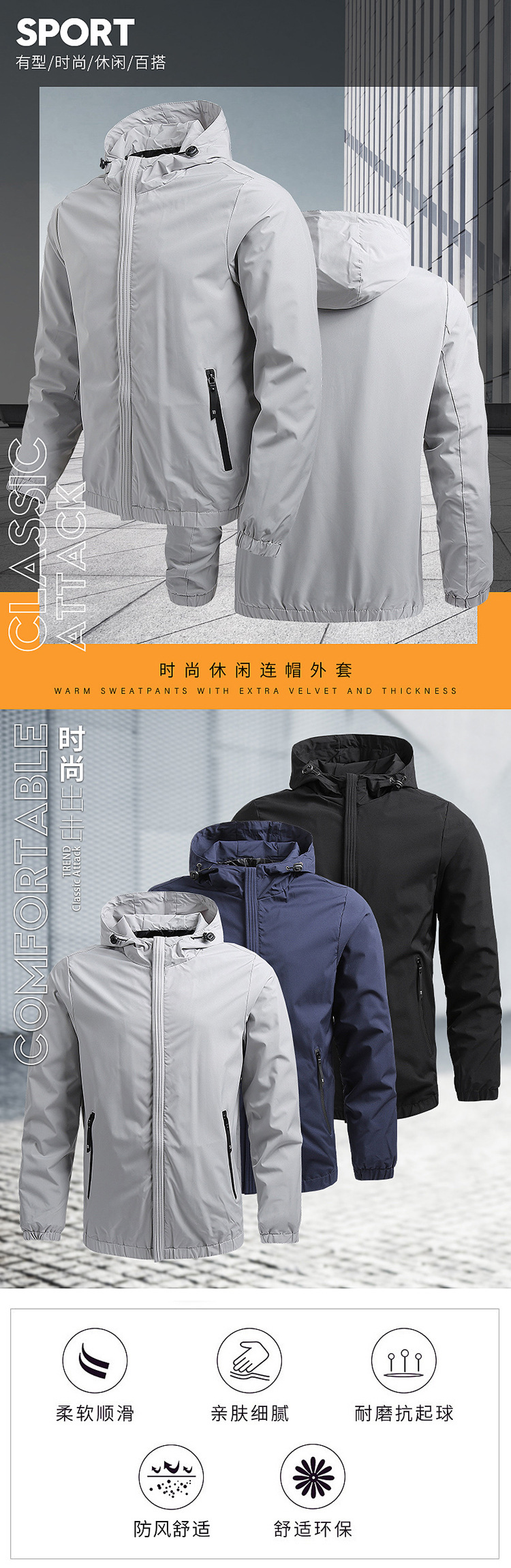 재킷 코트 봄 새로운 한국 캐주얼 남성 야구 유니폼 후드 단색 패션 브랜드 남성 대외 무역 표준화 가능