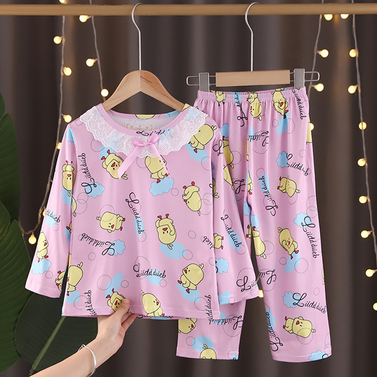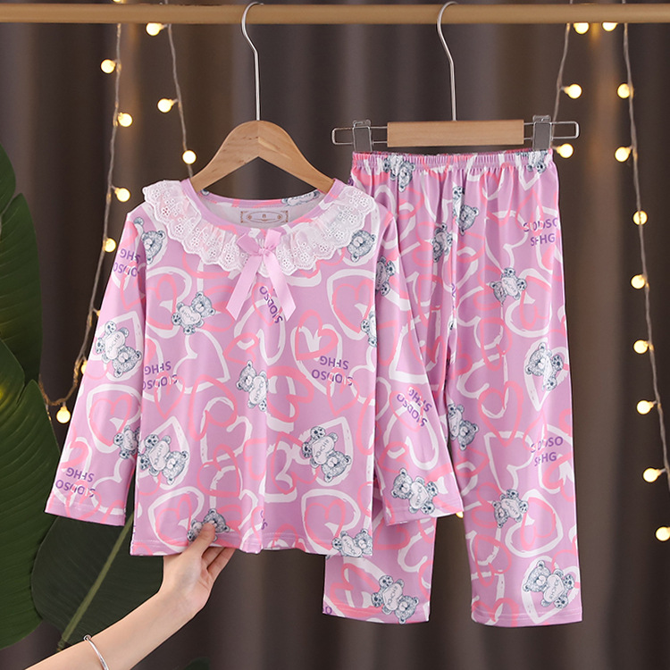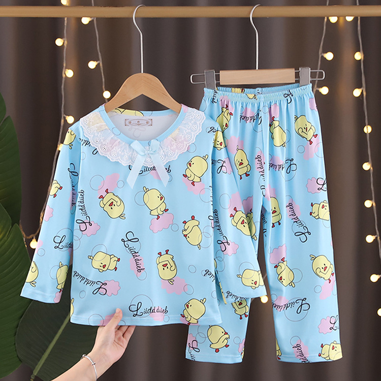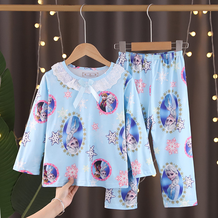 새로운 어린이 속옷 세트 소녀 가을과 겨울 가정 옷 레이스 만화 공주 가을 옷 긴 바지 잠옷 도매스토어 가기