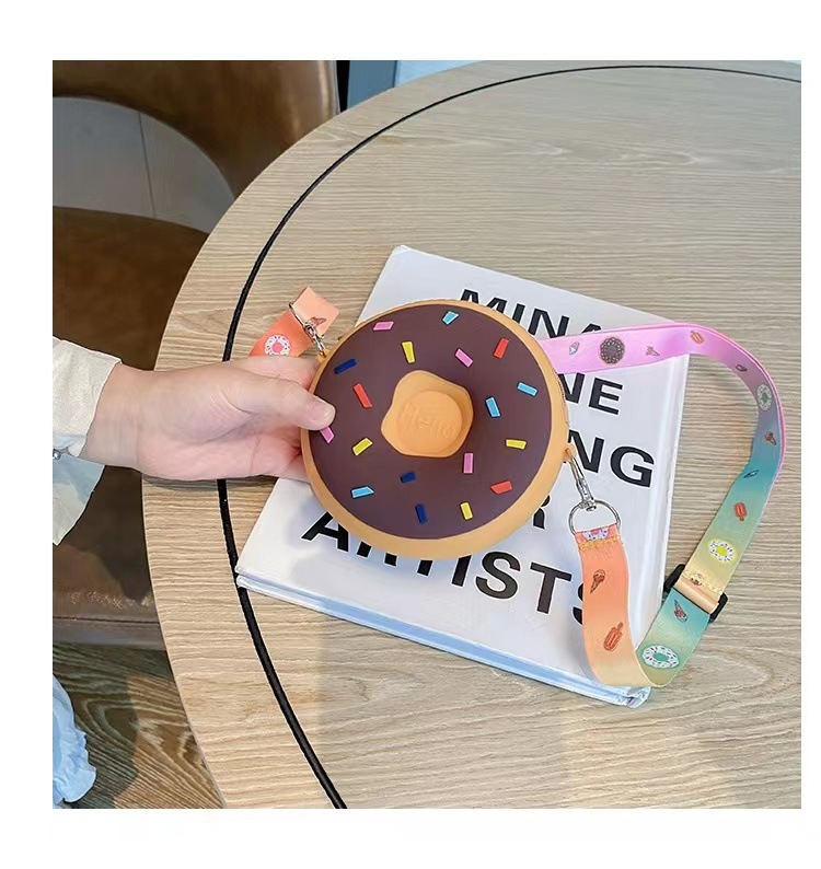뜨거운 판매 어린이 도넛 실리콘 가방 무지개 실리콘 크로스 바디 가방 귀여운 패션 어깨 동전 지갑 공급 가방스토어 가기