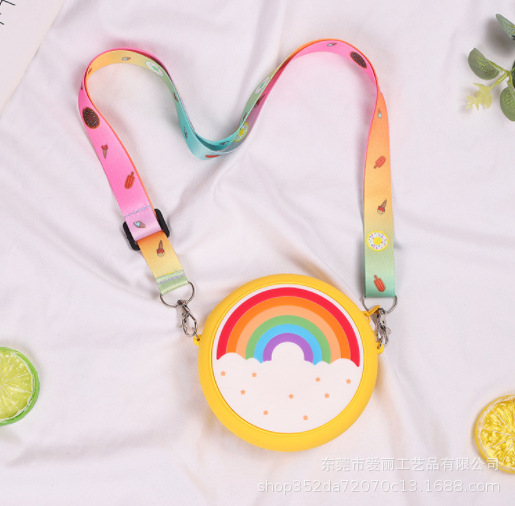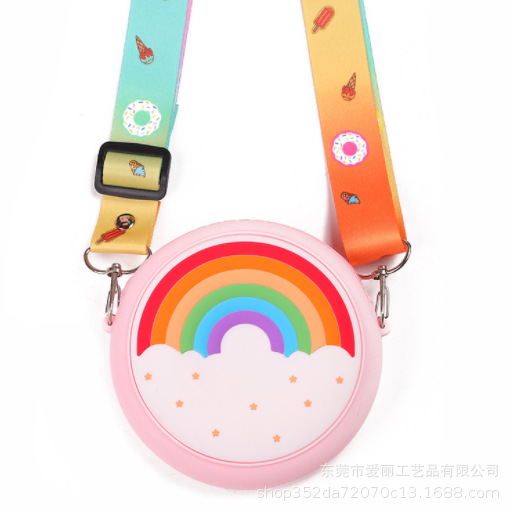 뜨거운 판매 어린이 도넛 실리콘 가방 무지개 실리콘 크로스 바디 가방 귀여운 패션 어깨 동전 지갑 공급 가방