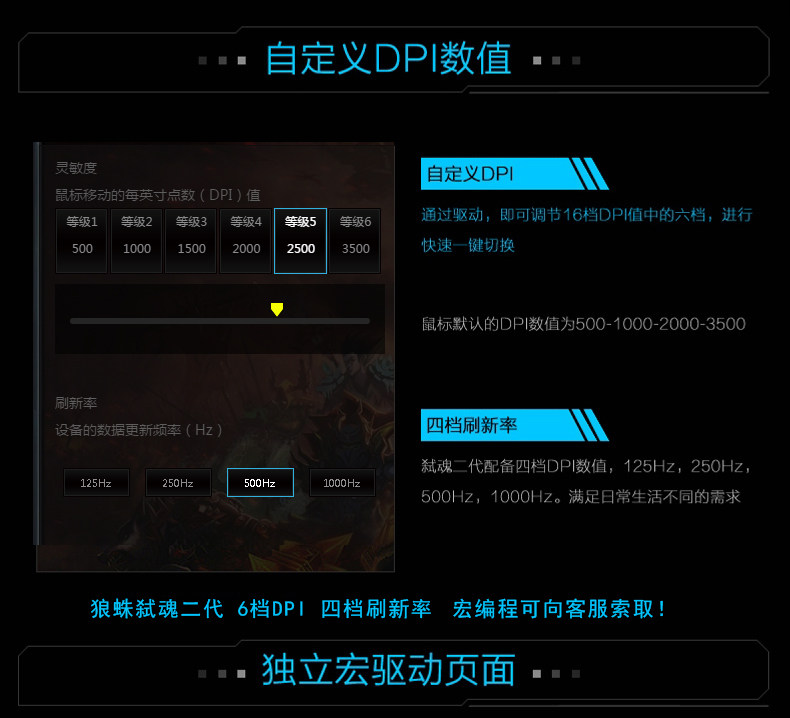 ◆四档DPI可调节设计                                           ◆游戏办公随心用