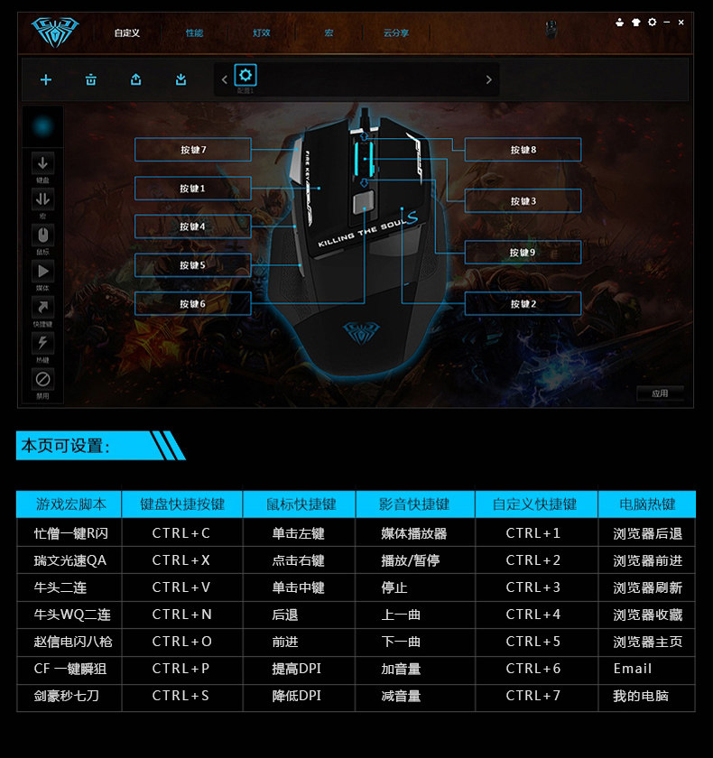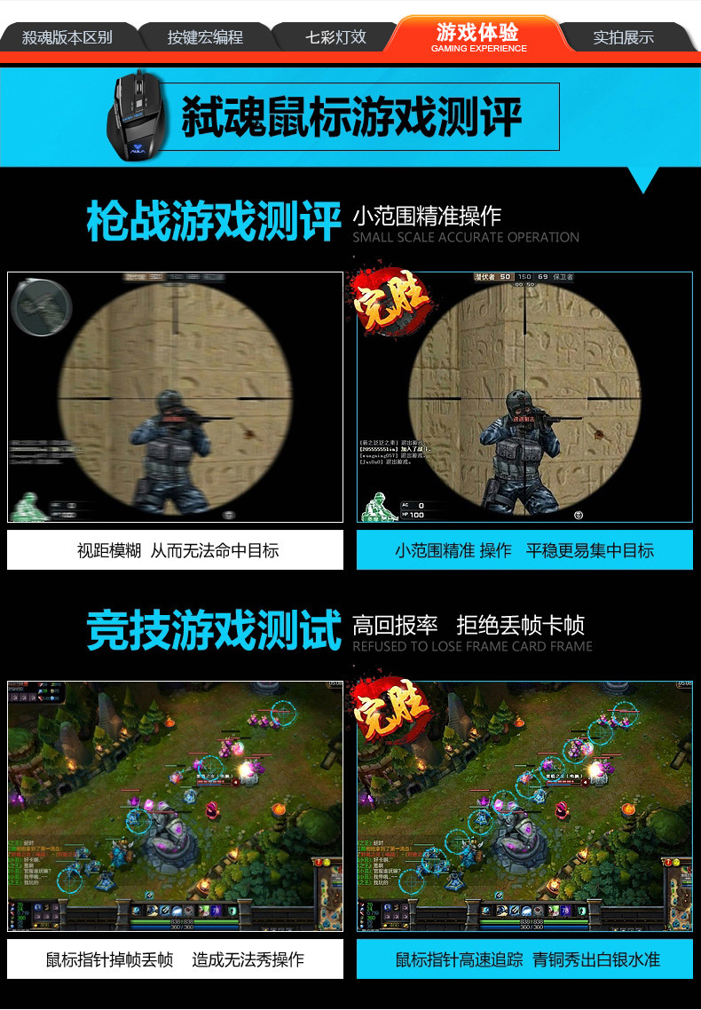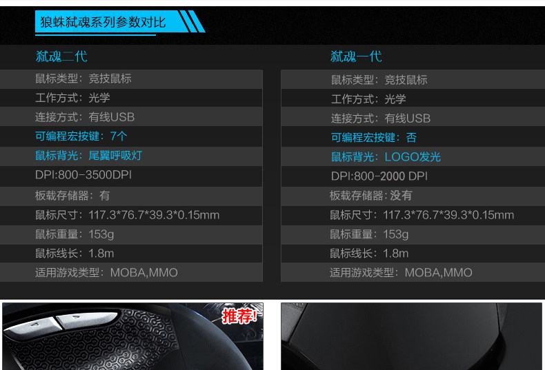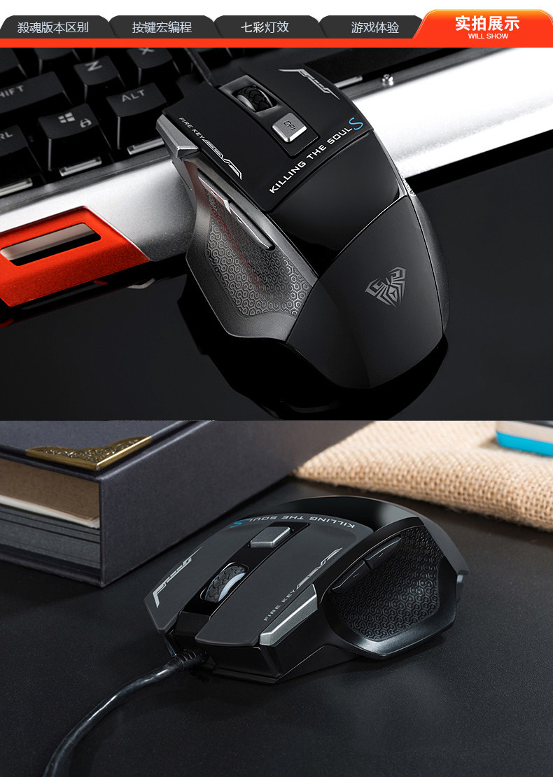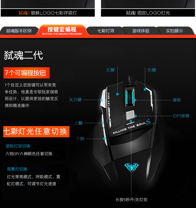 S:只有弑魂二代才有宏自定义按键和尾翼发光的哦,一代是不带宏自定义按键和尾翼发光的呢,