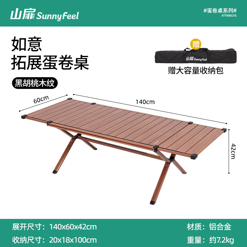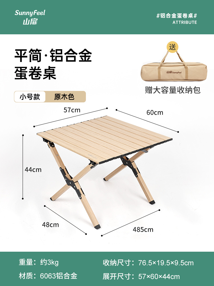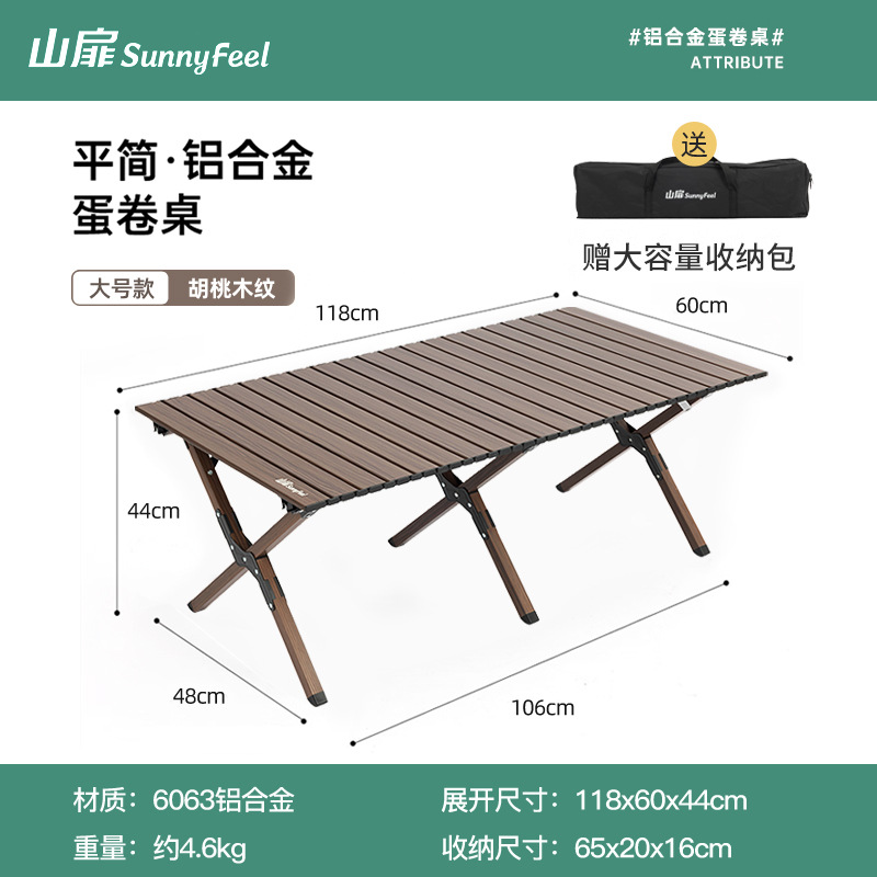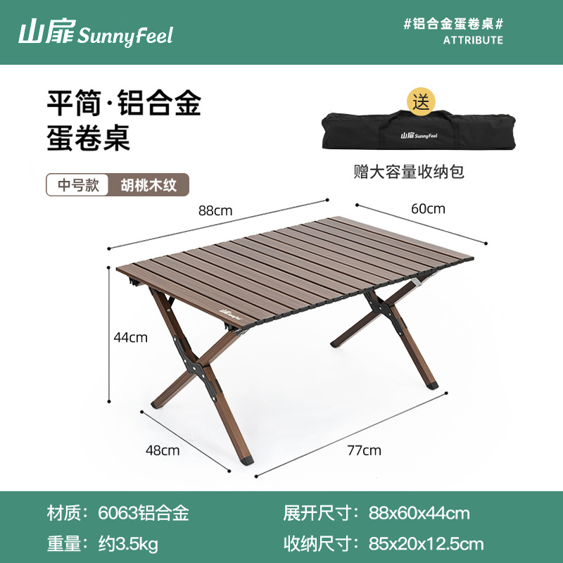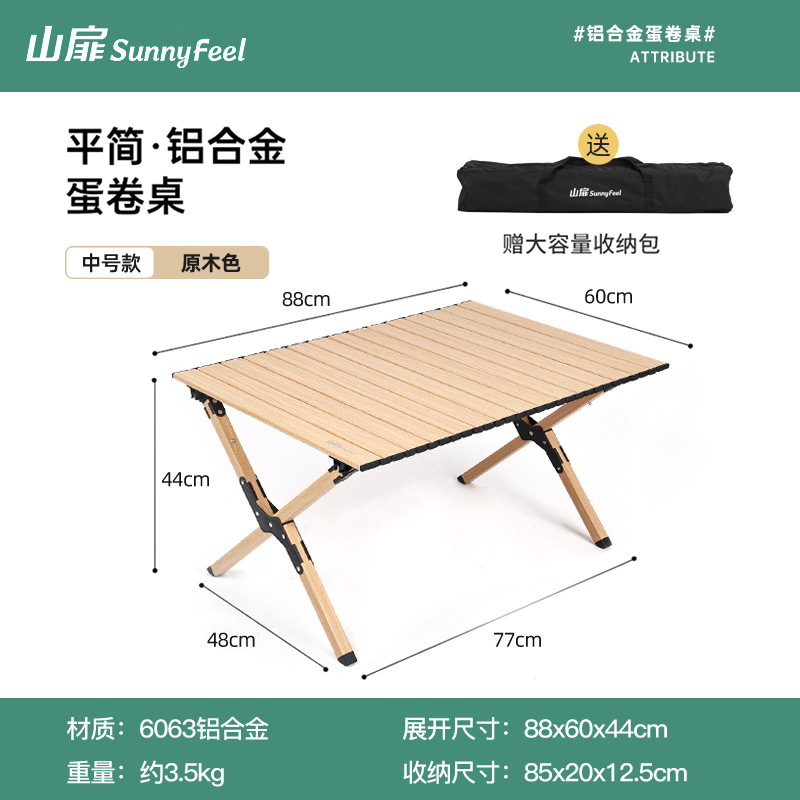 SunnyFeel 산 잎 야외 캠핑 목재 곡물 테이블 접이식 테이블과 의자 도매 캠핑 알루미늄 합금 계란 롤 테이블스토어 가기