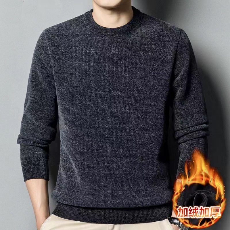 겨울 남자의 니트 셔츠 셔닐 기모 두꺼운 스웨터 남자의 라운드 넥 느슨한 플러스 사이즈 기본 셔츠 남자의 겨울 의류