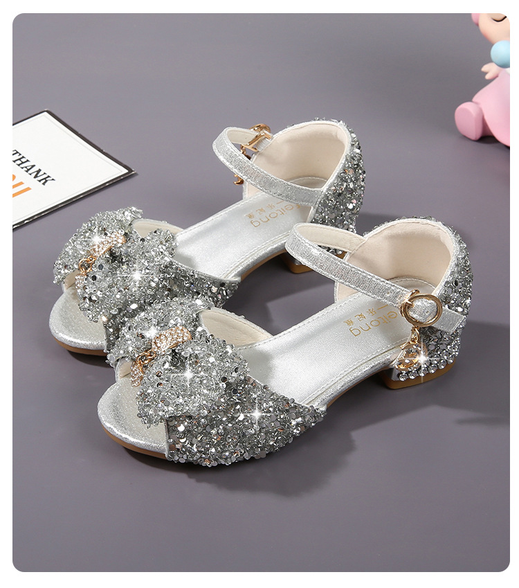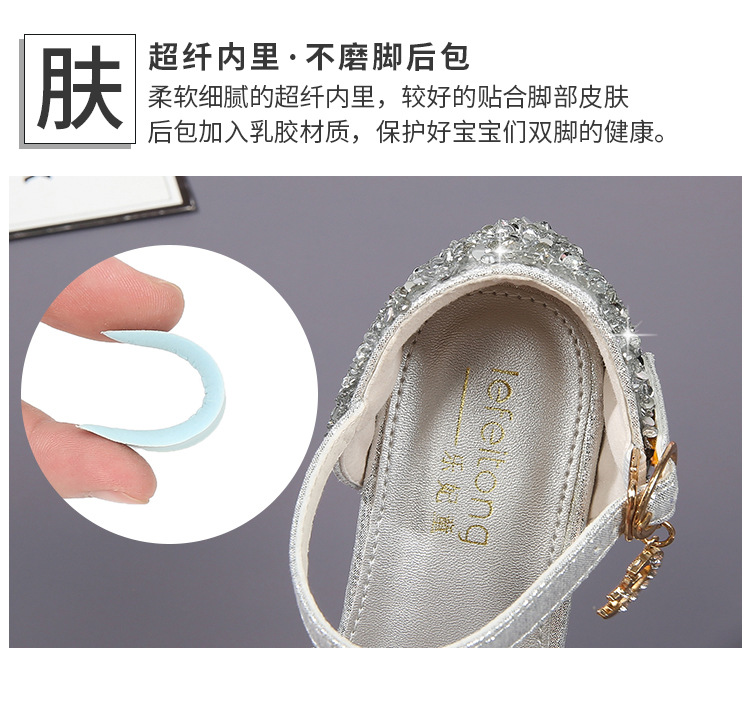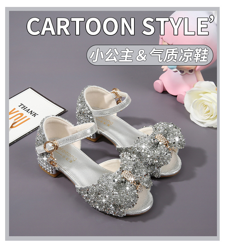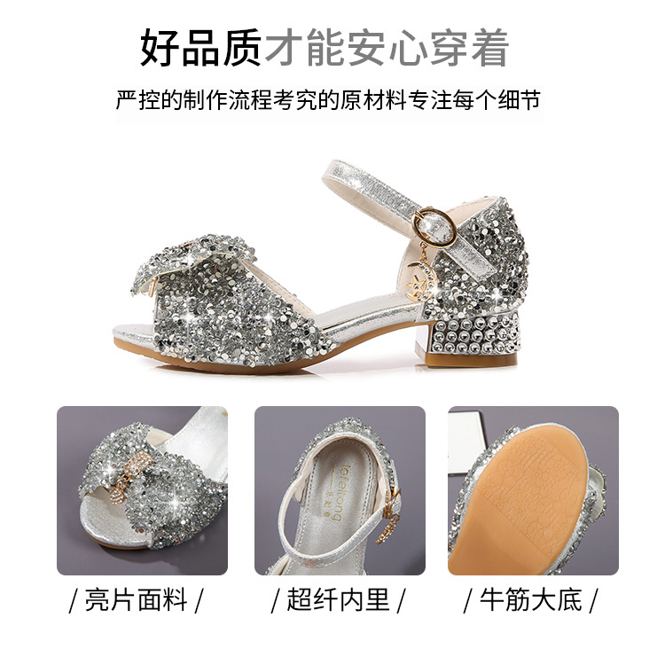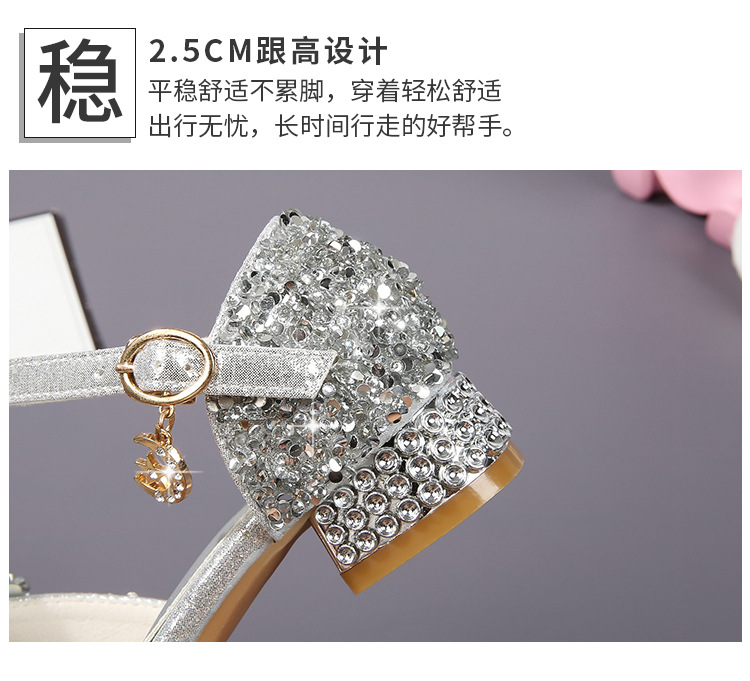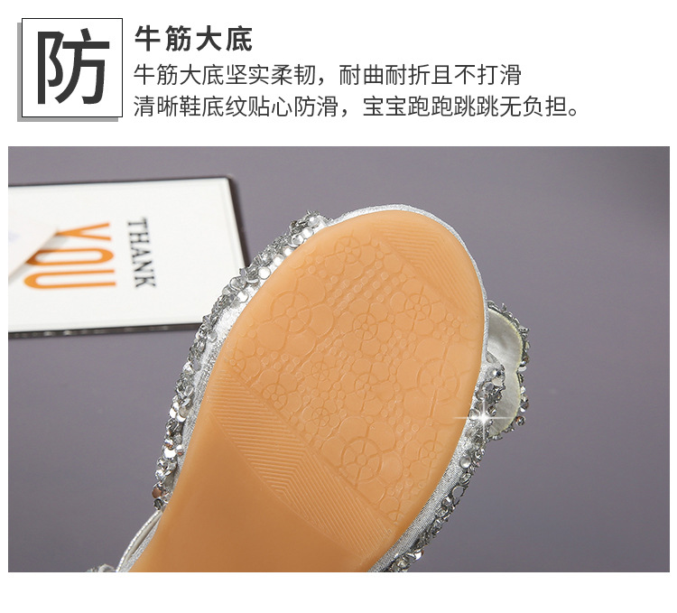 공주 샌들, 워터드롭 스톤 슈즈, 여아 하이힐, 여아용 미끄럼 방지 부드러운 밑창 신발, 중학생용 크리스탈 작은 공주 신발, 어린이용스토어 가기