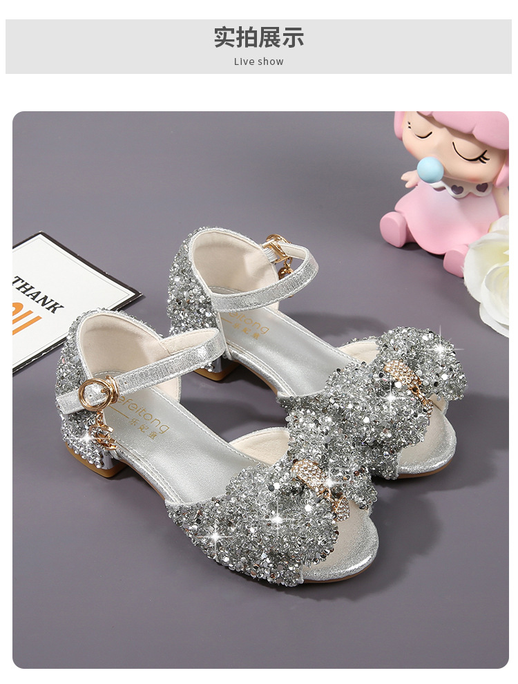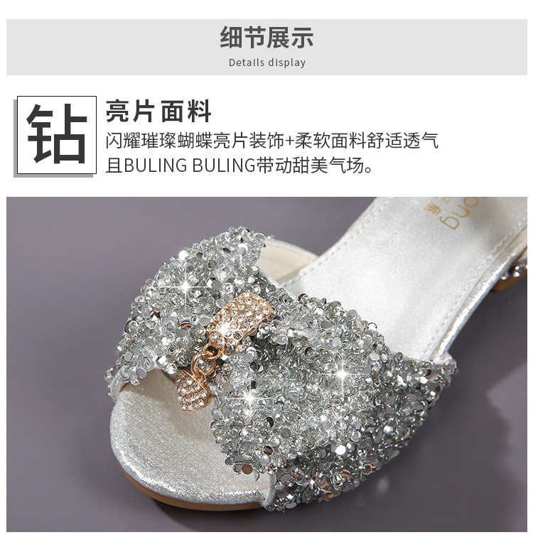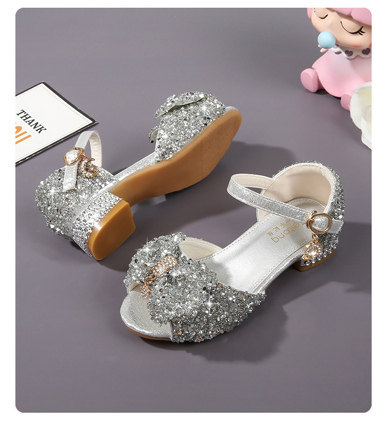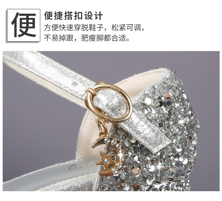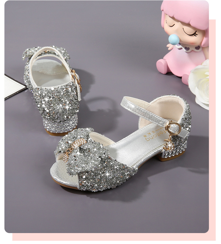 공주 샌들, 워터드롭 스톤 슈즈, 여아 하이힐, 여아용 미끄럼 방지 부드러운 밑창 신발, 중학생용 크리스탈 작은 공주 신발, 어린이용스토어 가기