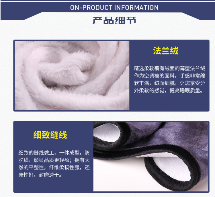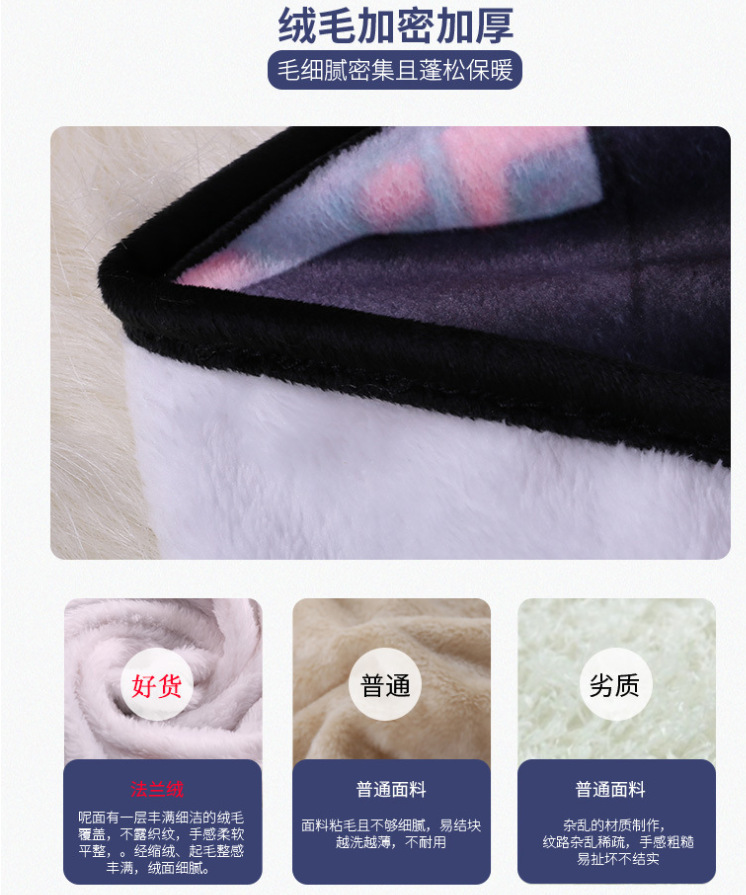 材质:法兰绒   布料克重:520克/平和260克/平2种  印花工艺:数码热转印  车缝工艺:包边/折边