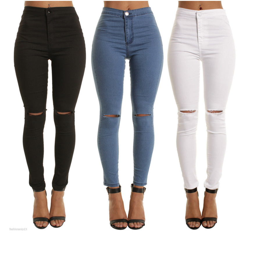2021 대외 무역 여성 의류 AliExpress 뜨거운 판매 스트레치 청바지 슬리밍 무릎 구멍 작은 다리 바지스토어 가기