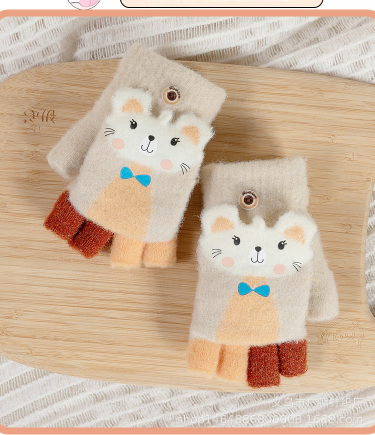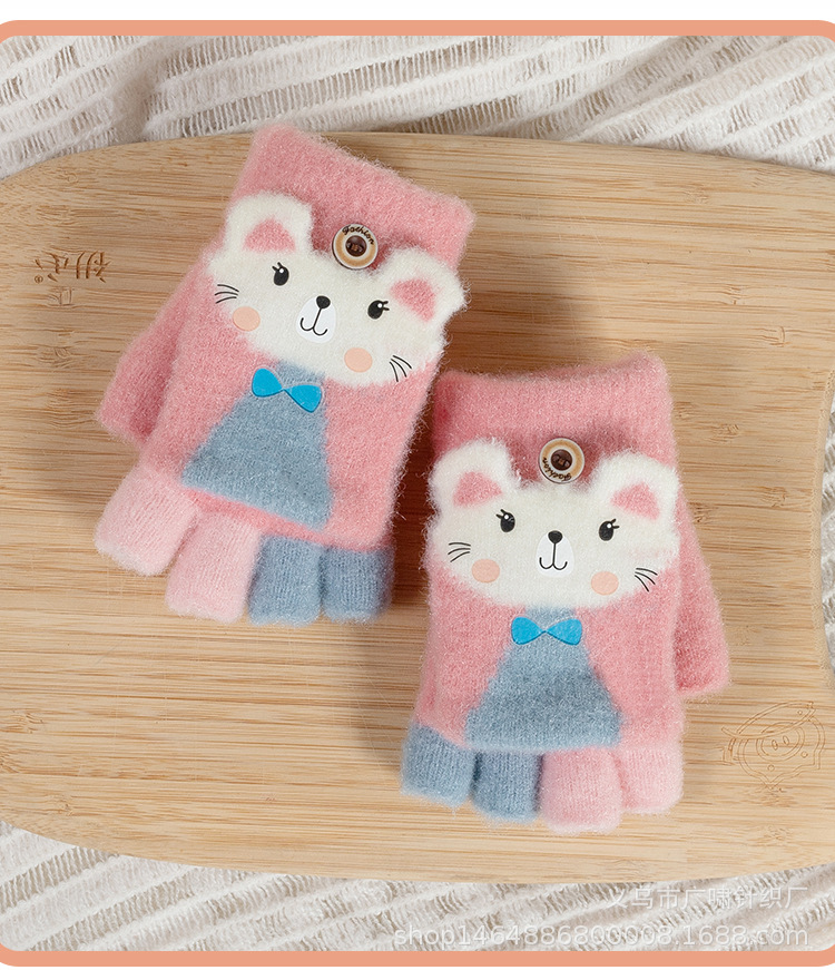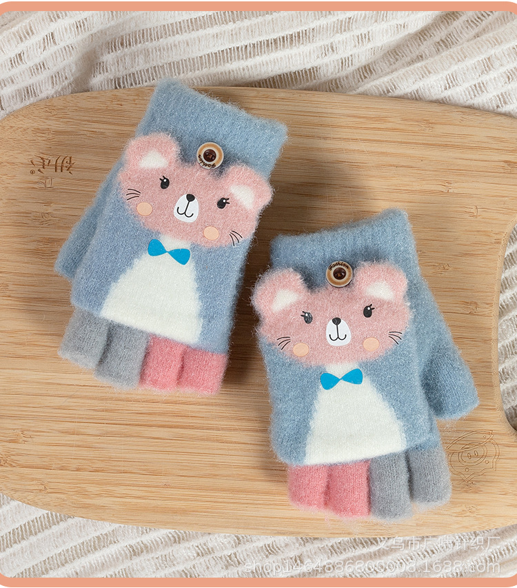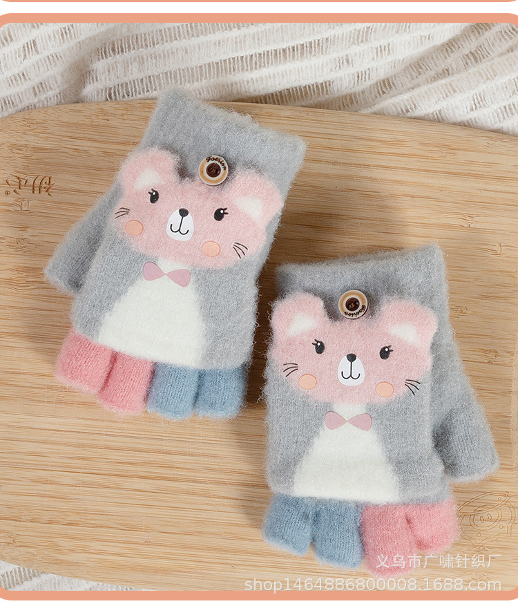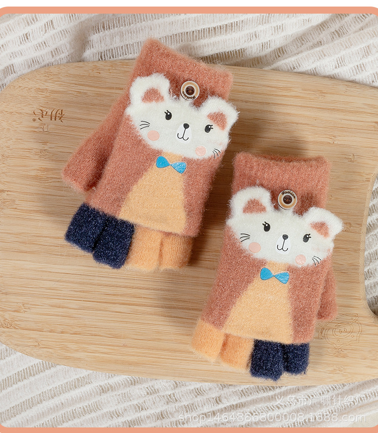 반손가락 만화 캐릭터 두꺼운 보온 신상 아동용 자카드 니트 손가락 장갑 겨울용 플리스 라이닝 플립업 장갑스토어 가기