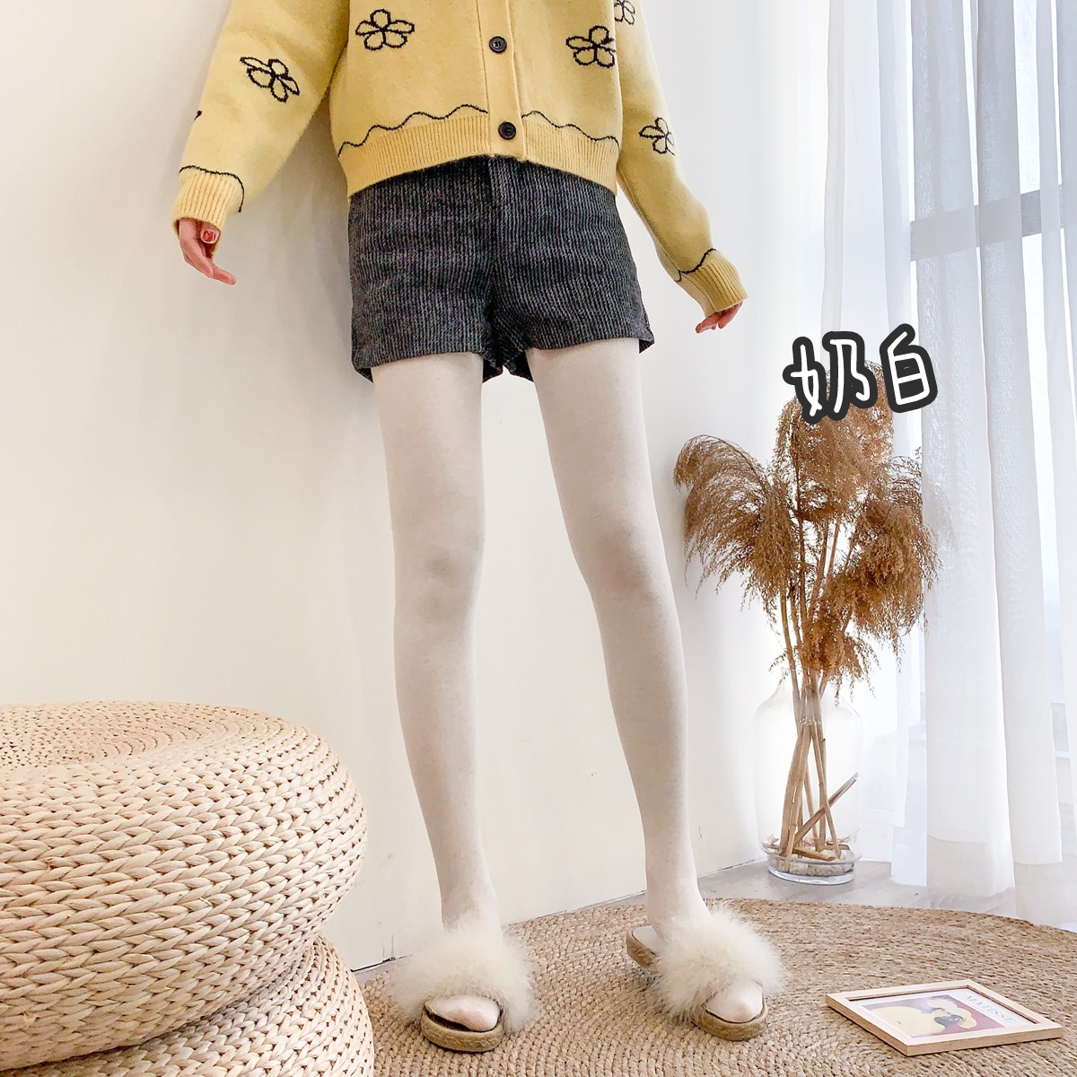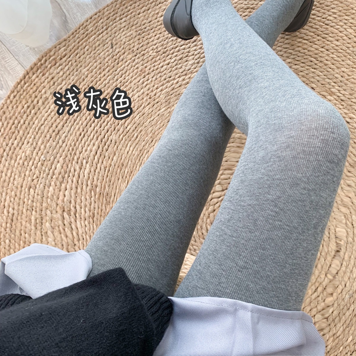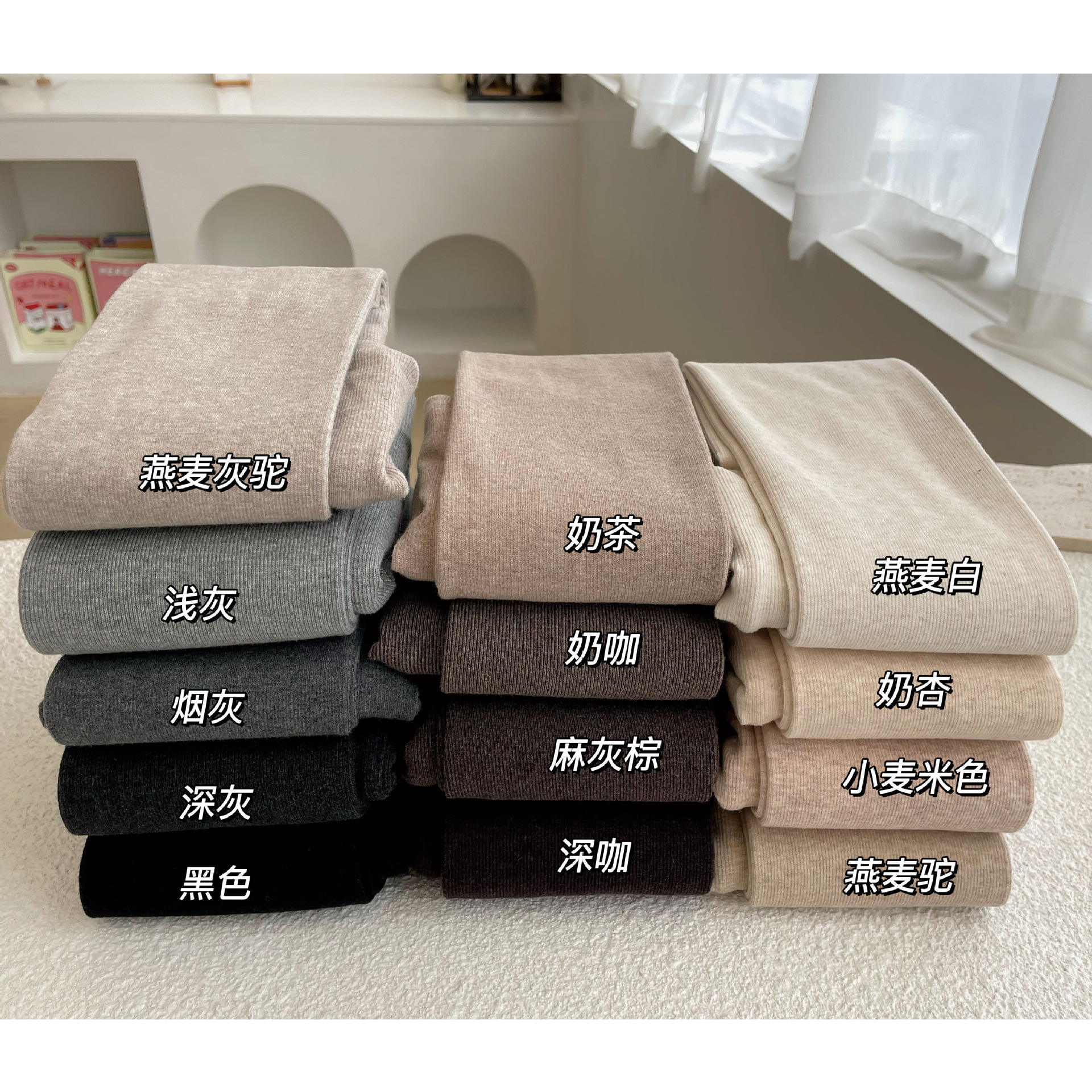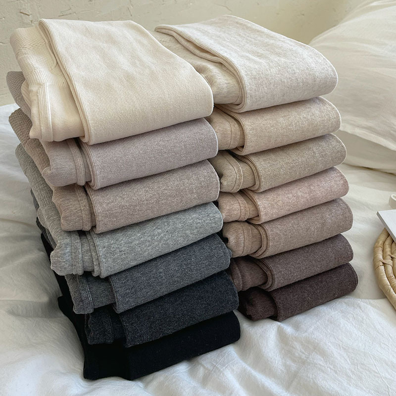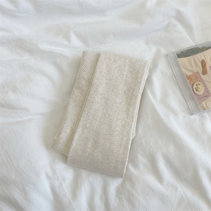 가을과 겨울 중간 두꺼운 면 오트밀 크림 화이트 세로 줄무늬 압력 슬리밍 다리 팬티 스타킹 레깅스 어린이스토어 가기