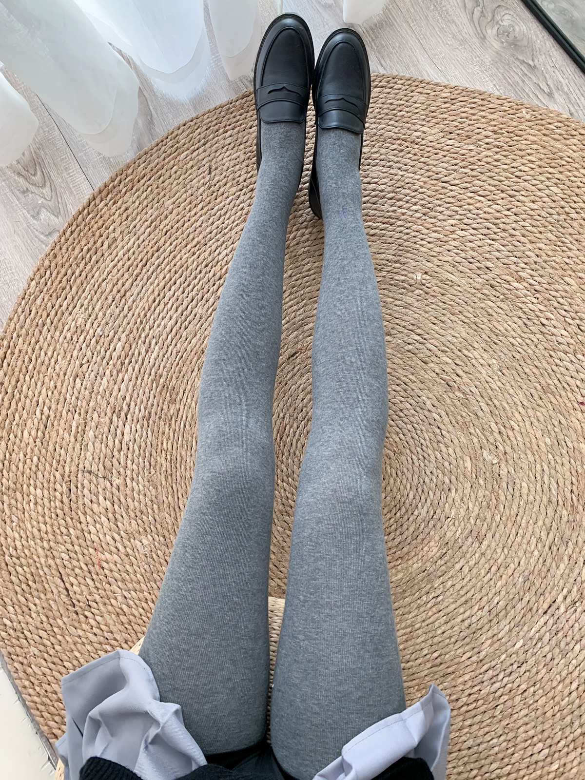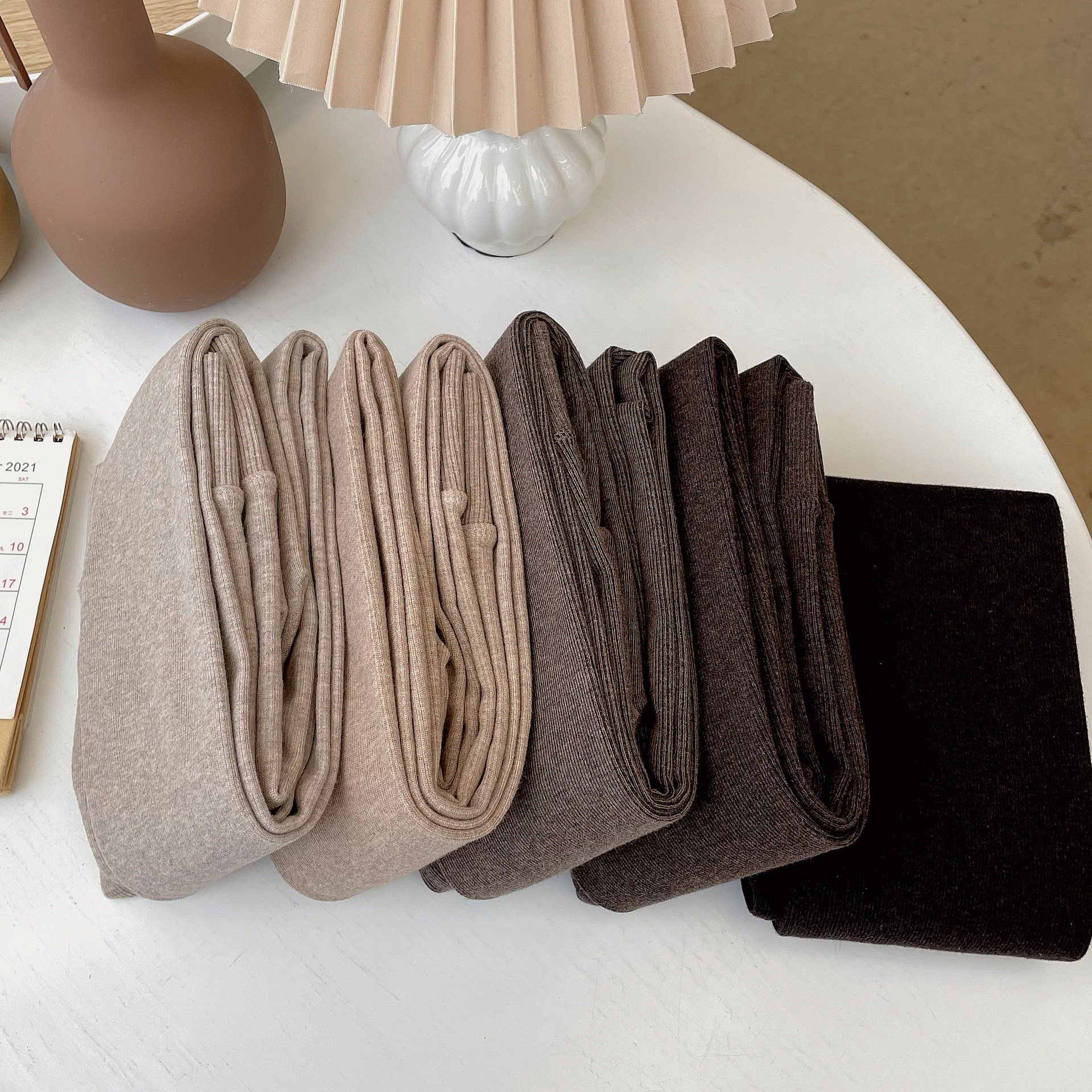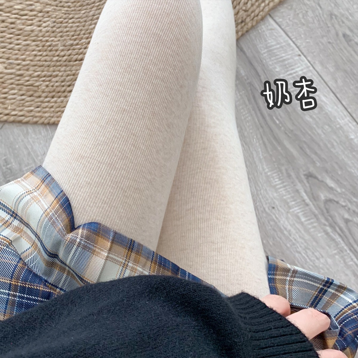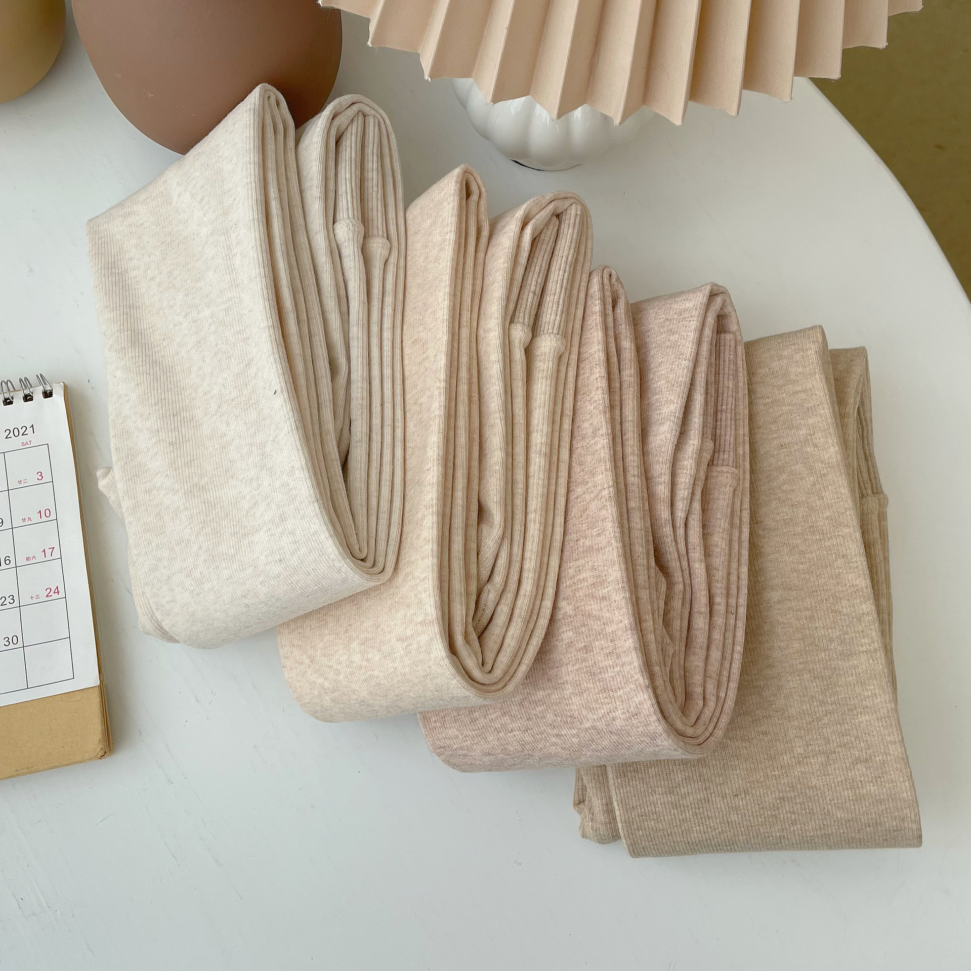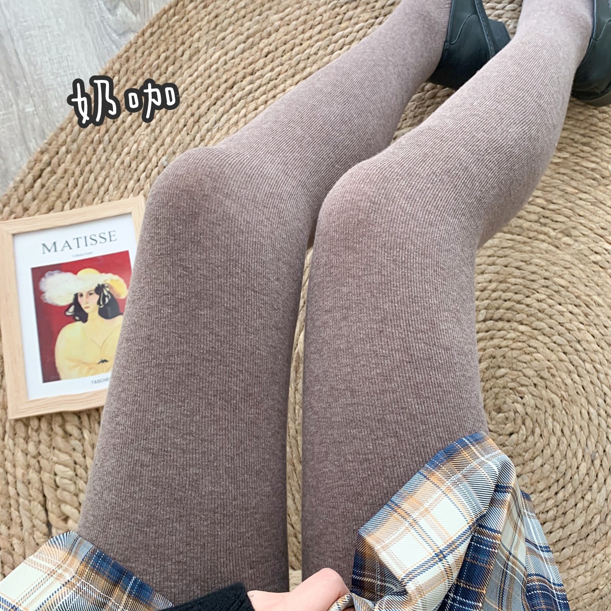 가을과 겨울 중간 두꺼운 면 오트밀 크림 화이트 세로 줄무늬 압력 슬리밍 다리 팬티 스타킹 레깅스 어린이스토어 가기