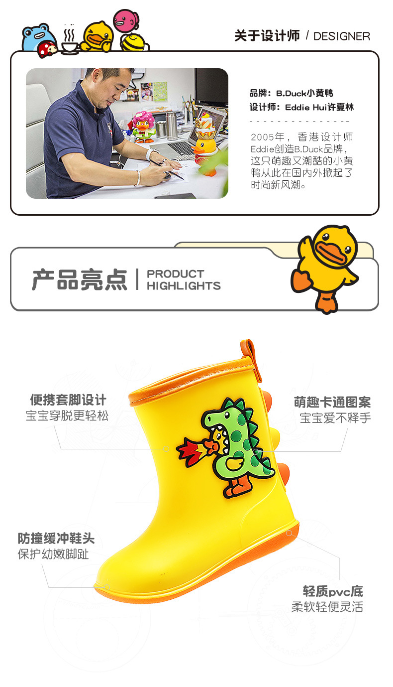 b.duck 아동용 신발, 작은 노란 오리 어린이 장화, 봄 가을 신상 남아 방수 장화, 여아 워터슈즈, 트렌디한 신발스토어 가기