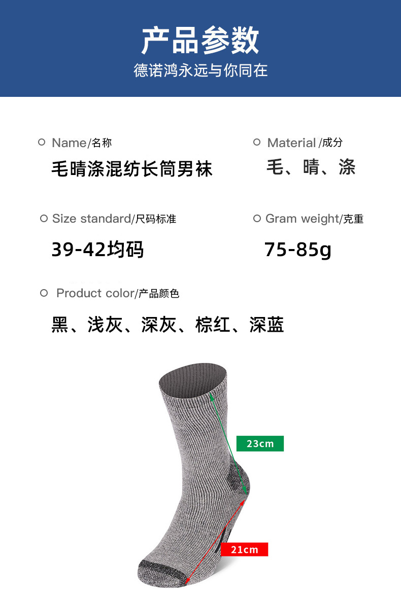 남성용 가을 겨울 양말, 롱 튜브, 두꺼운 양모 혼방사, 두꺼운 바늘 84바늘, 풀 테리