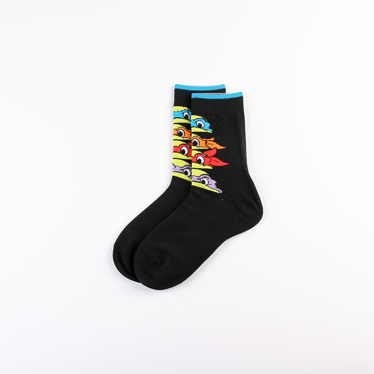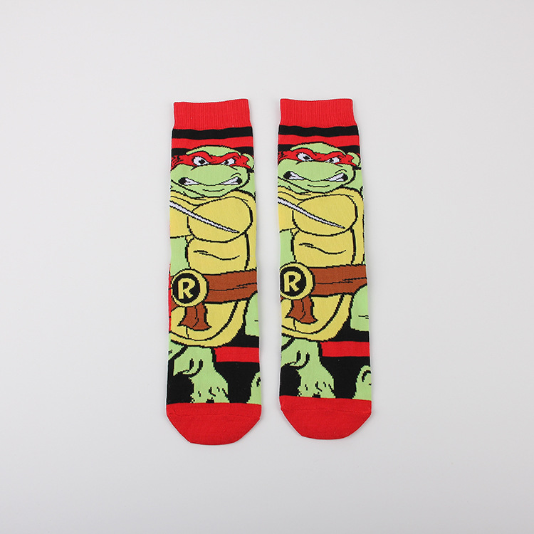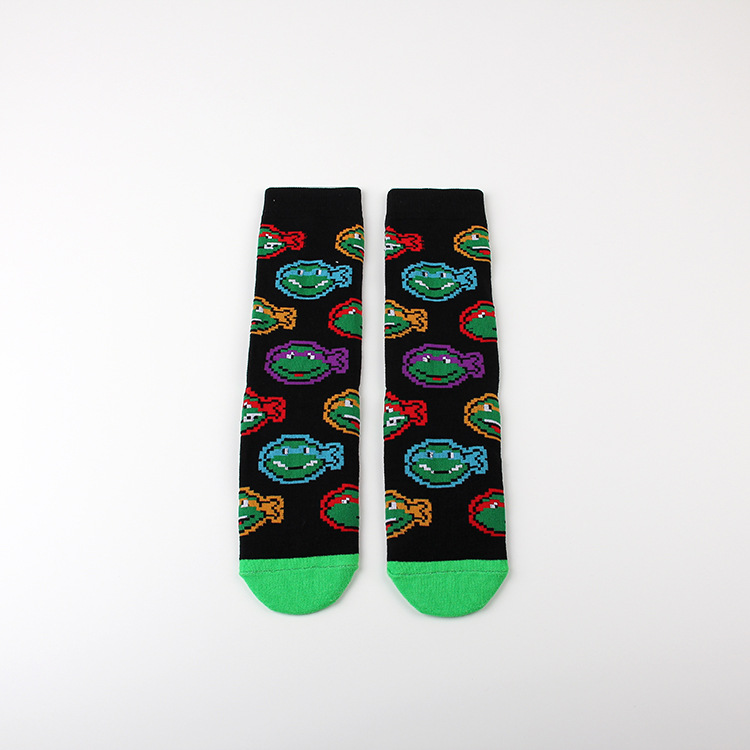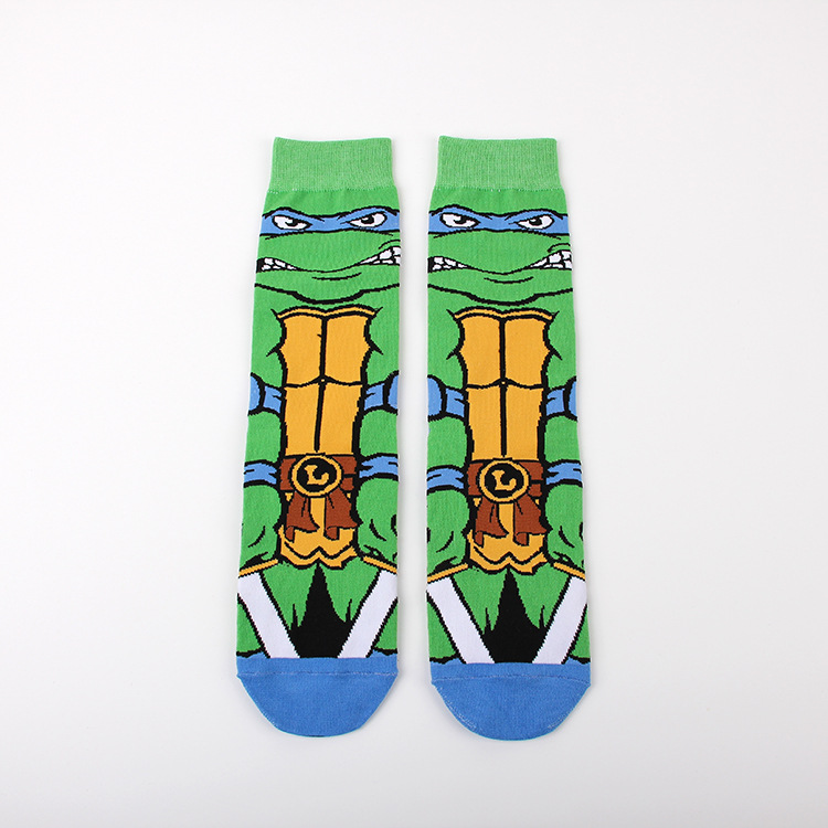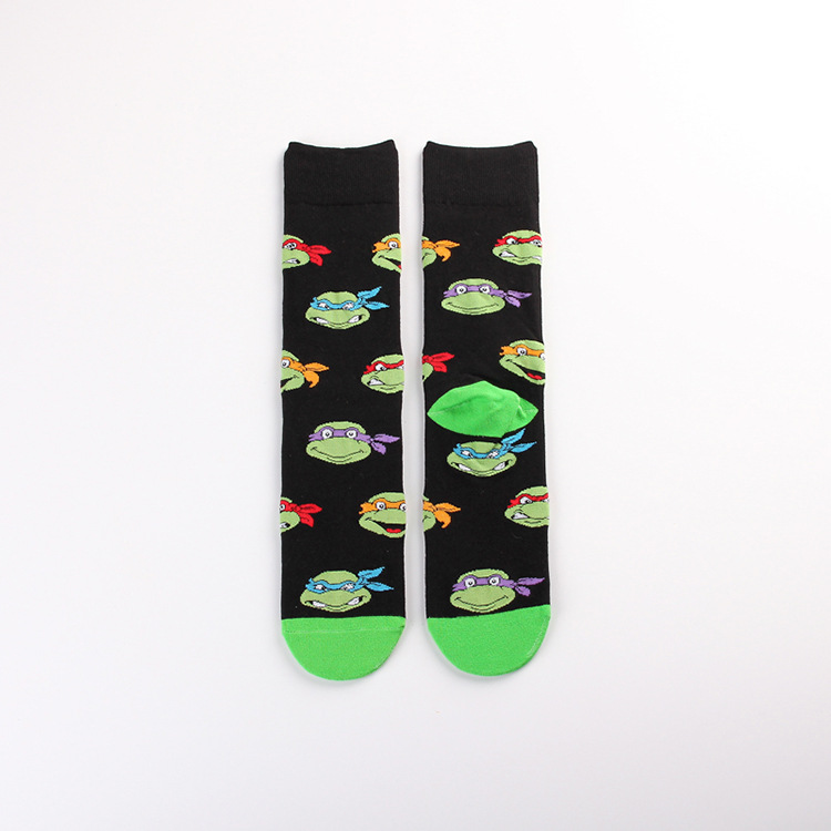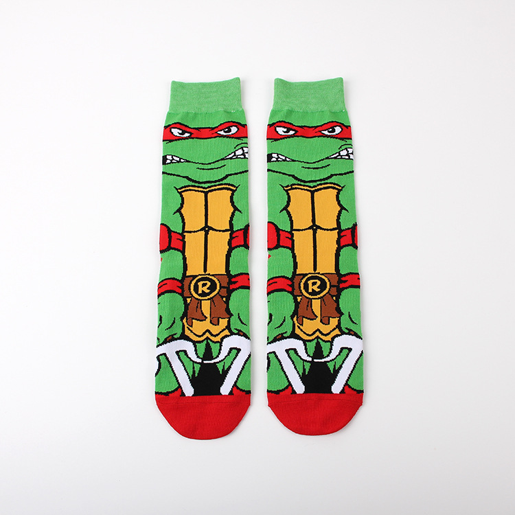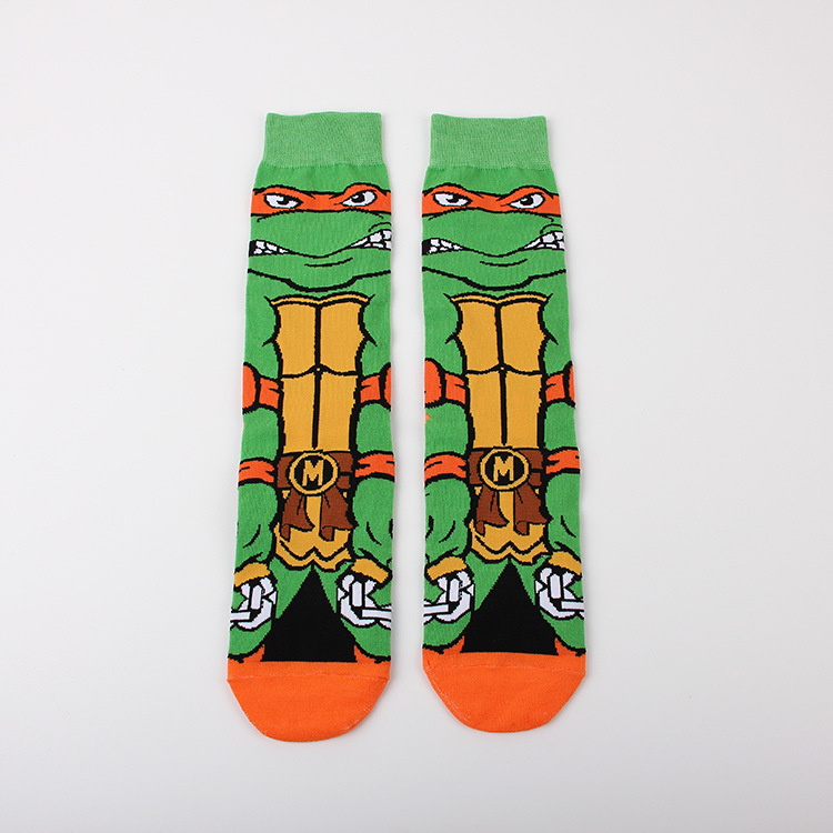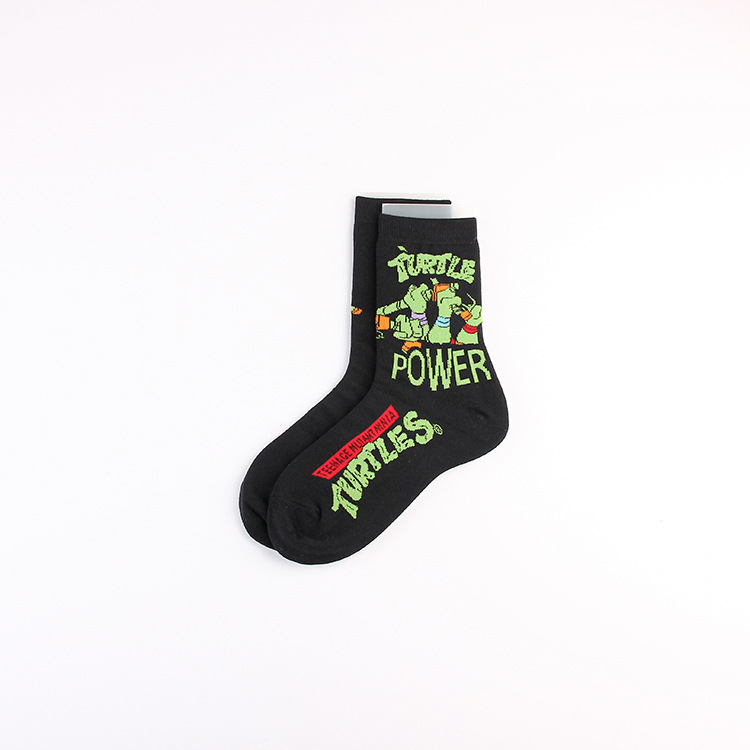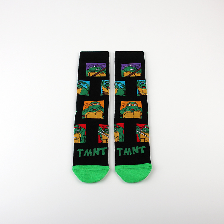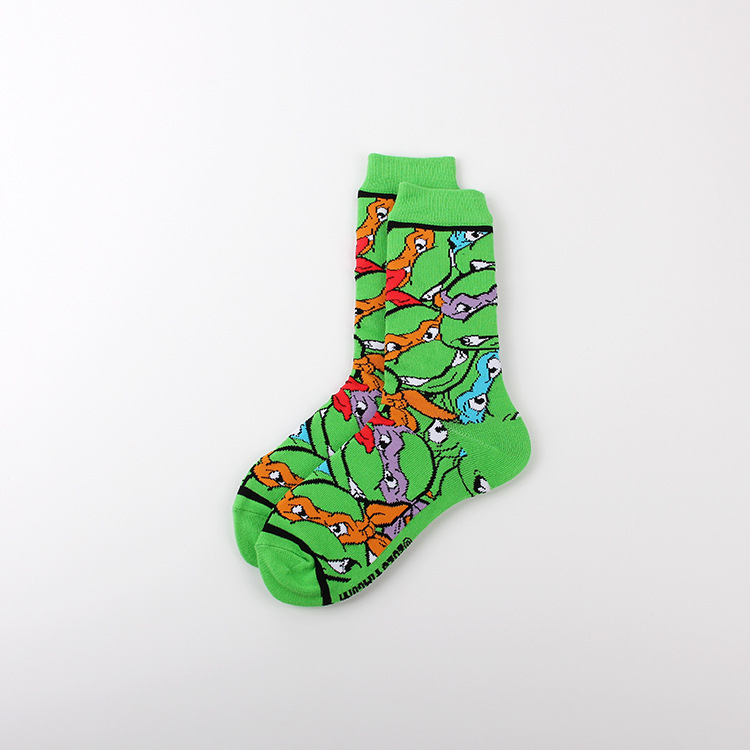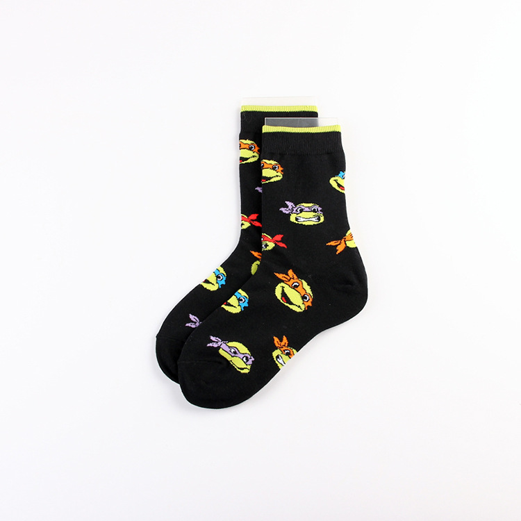 만화 애니메이션 십대 돌연변이 닌자 거북이 캐주얼 스포츠 자카드 사계절 여성 청소년 커플 중간 길이 양말 남자의 유행 양말