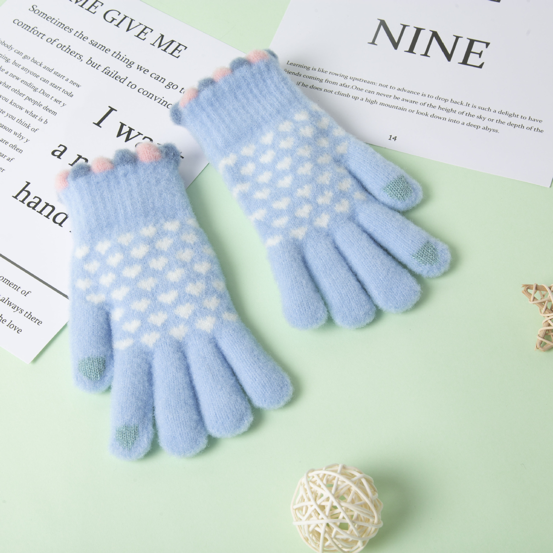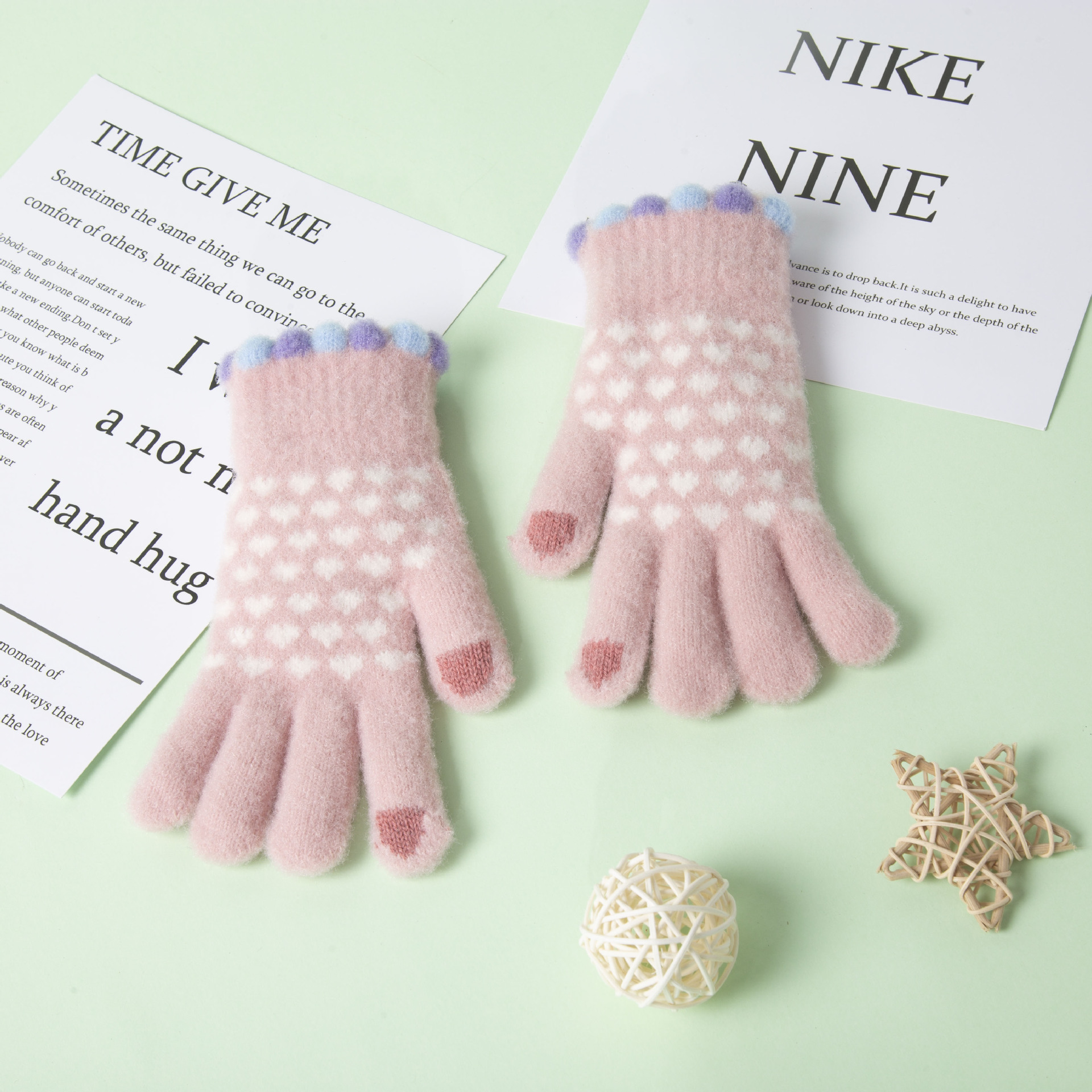 터치 스크린 한국어 버전의 ins 장갑 여성 겨울 조커 학생 귀여운 다섯 손가락 풀 핑거 울 따뜻한 승마 도매