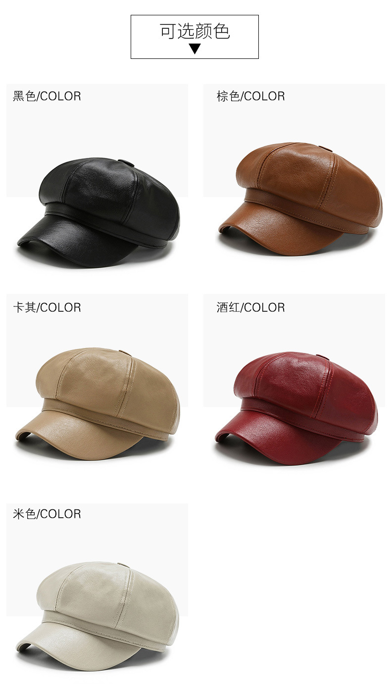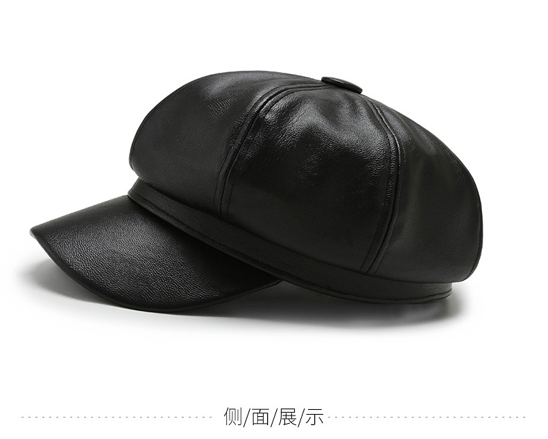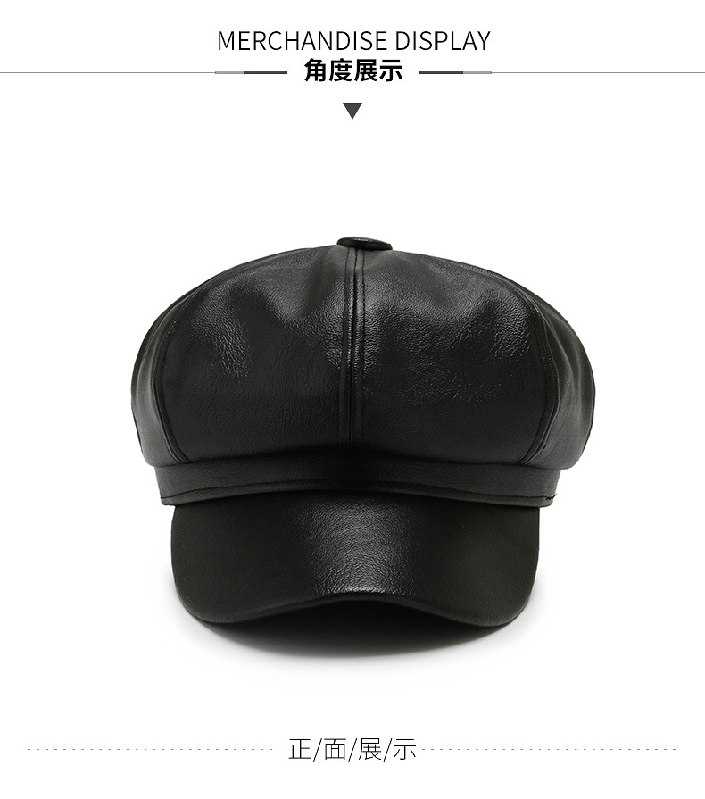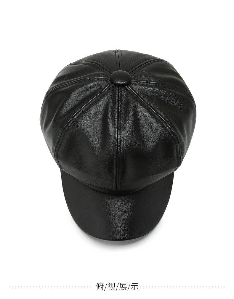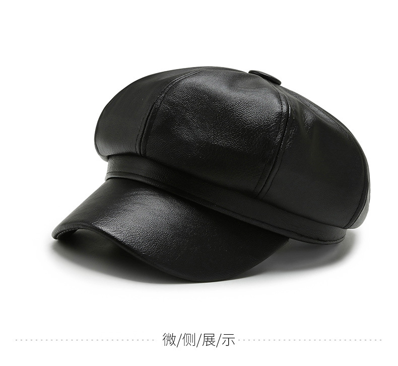 가을과 겨울 팔각형 모자 남성과 여성의 새로운 한국어 버전 조커 PU 업그레이드 팔각형 모자 화가 모자 가죽 모자 머리카락 세대스토어 가기