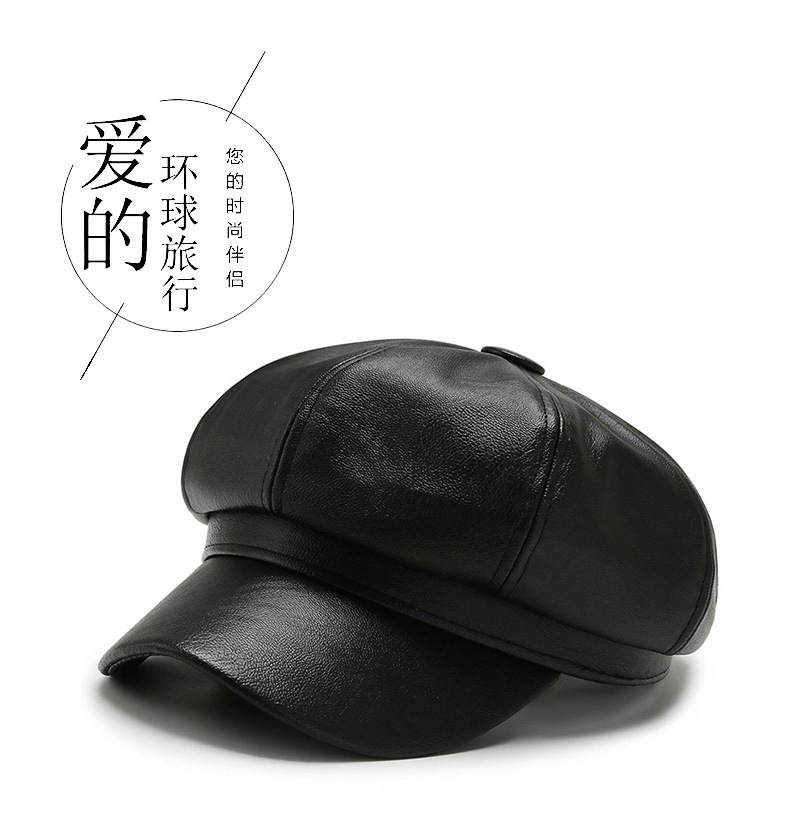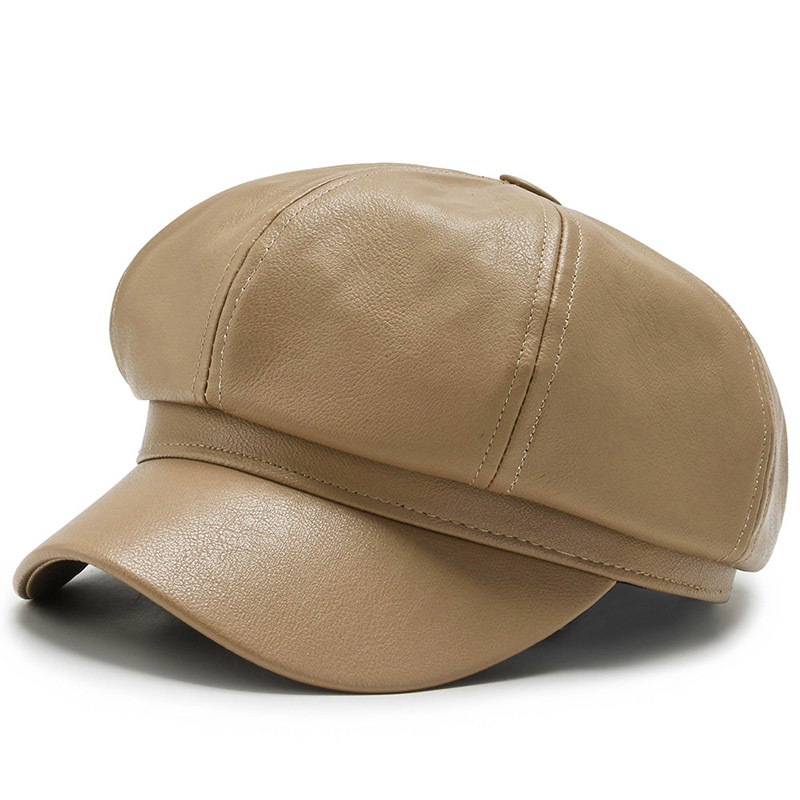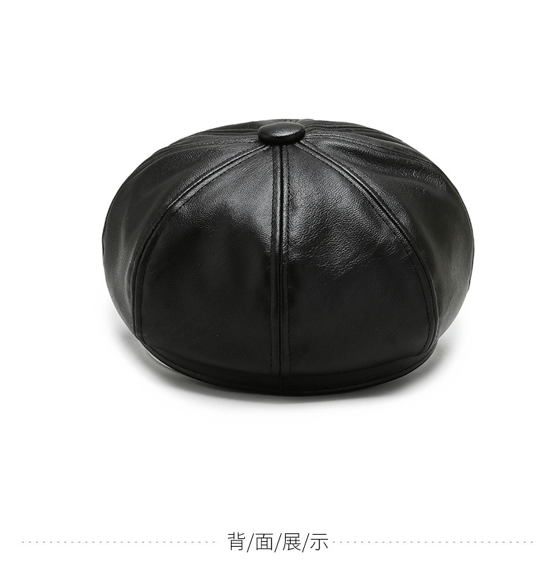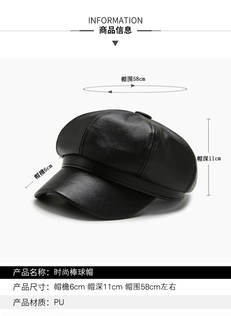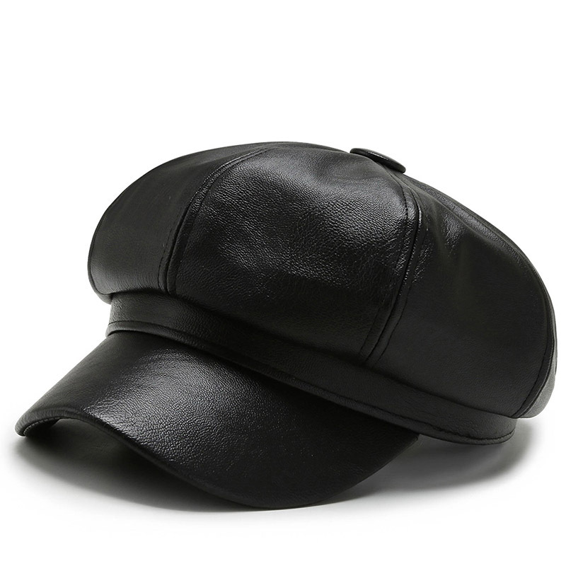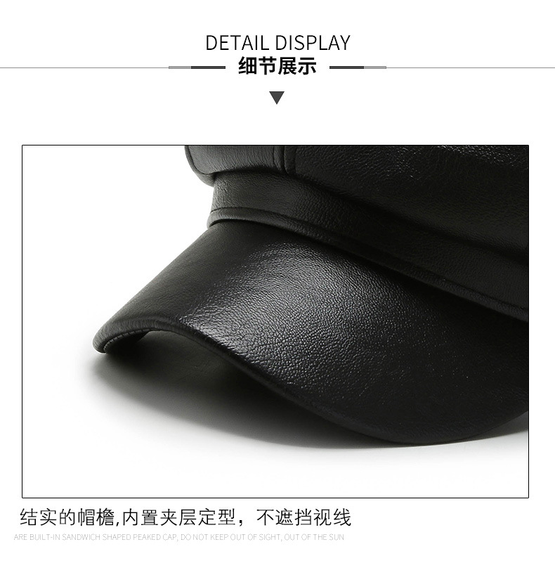 가을과 겨울 팔각형 모자 남성과 여성의 새로운 한국어 버전 조커 PU 업그레이드 팔각형 모자 화가 모자 가죽 모자 머리카락 세대스토어 가기