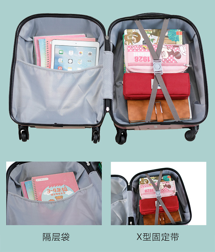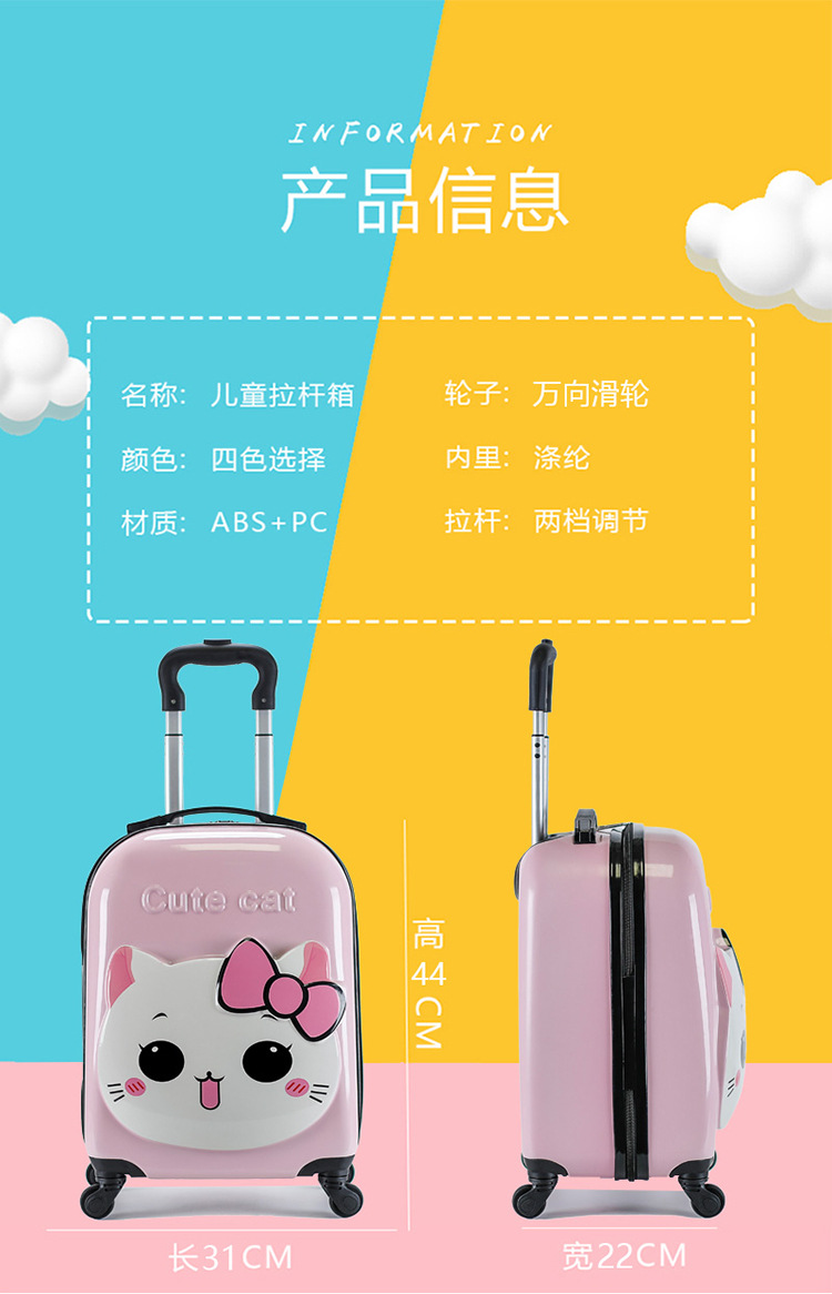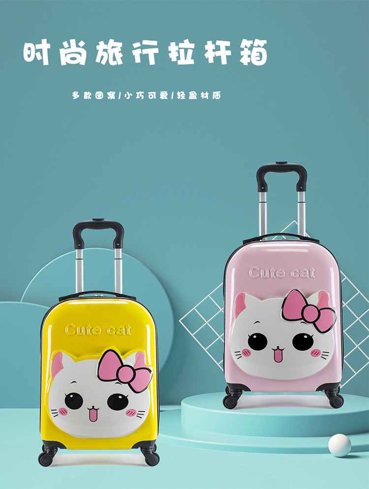 새로운 18inch 어린이용 트롤리 여행가방, 유치원용 여행가방, 로고 인쇄 가능, 귀여운 만화 캐릭터, 회전 바퀴가 달린 여행가방