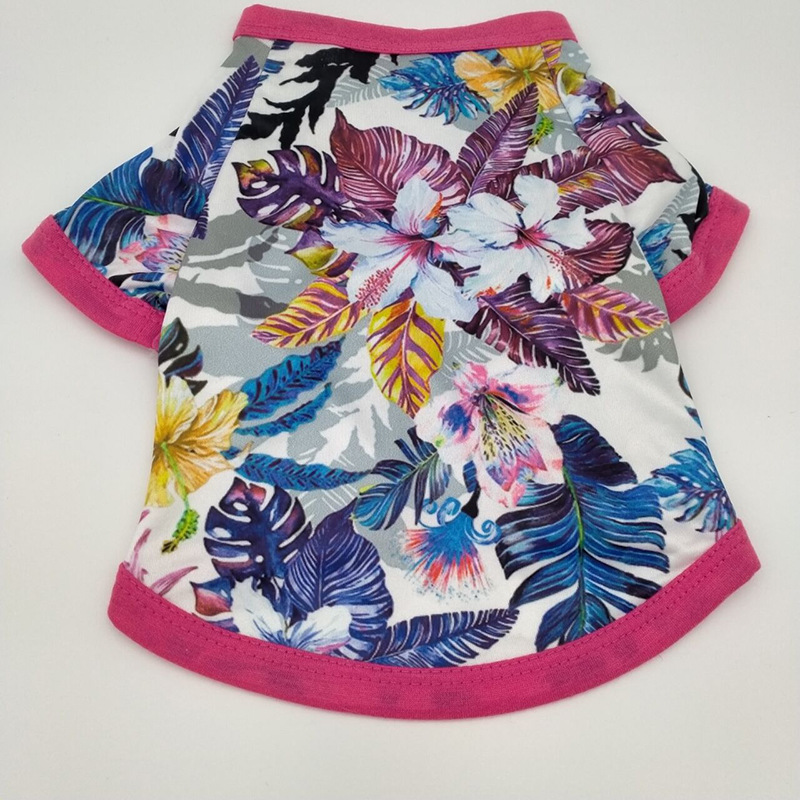 공장 공급 애완 동물 고양이 옷 하와이안 인쇄 귀여운 티셔츠 옷 테디 작은 개 면 옷