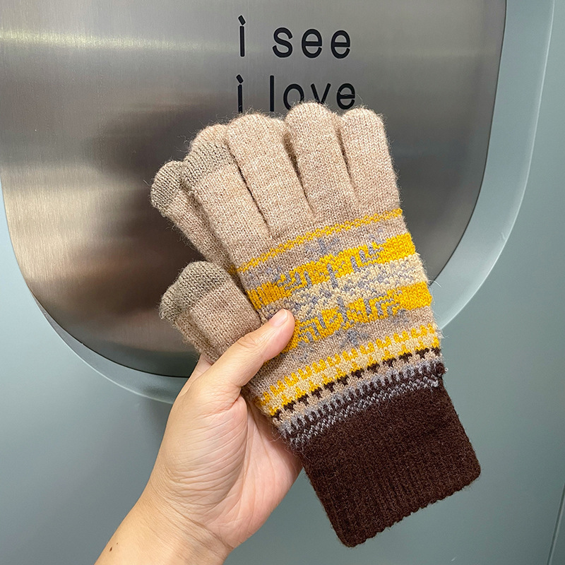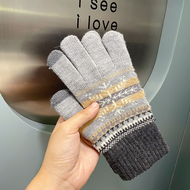 여성용 장갑 따뜻한 귀여운 학생 일본어 기모 다섯 손가락 감기 방지 모리 눈송이 터치 스크린 양모 손가락 장갑 겨울스토어 가기