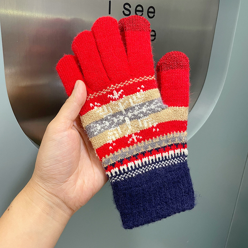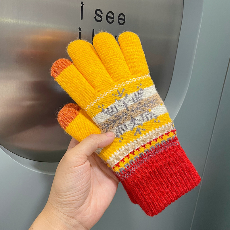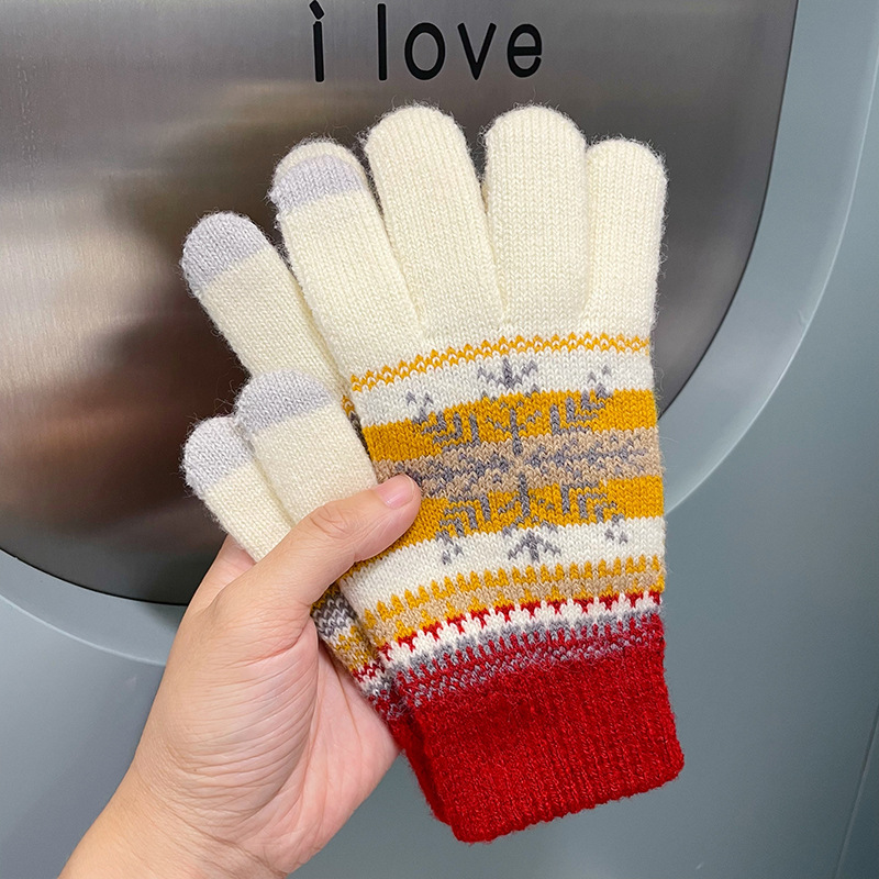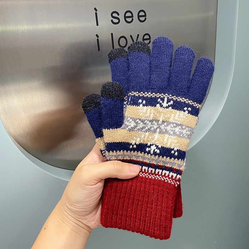 여성용 장갑 따뜻한 귀여운 학생 일본어 기모 다섯 손가락 감기 방지 모리 눈송이 터치 스크린 양모 손가락 장갑 겨울
