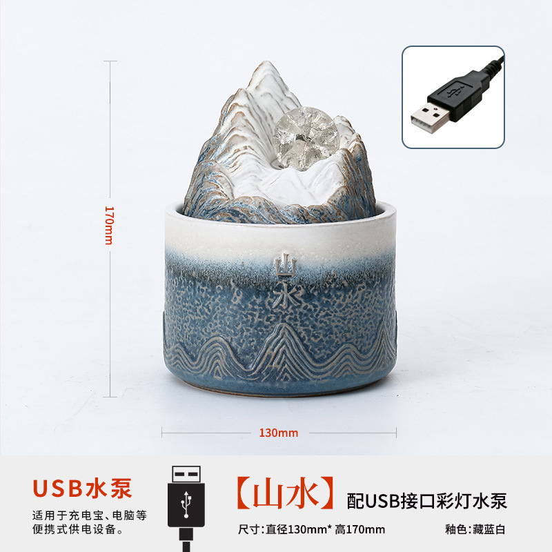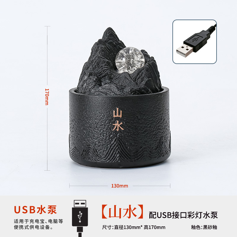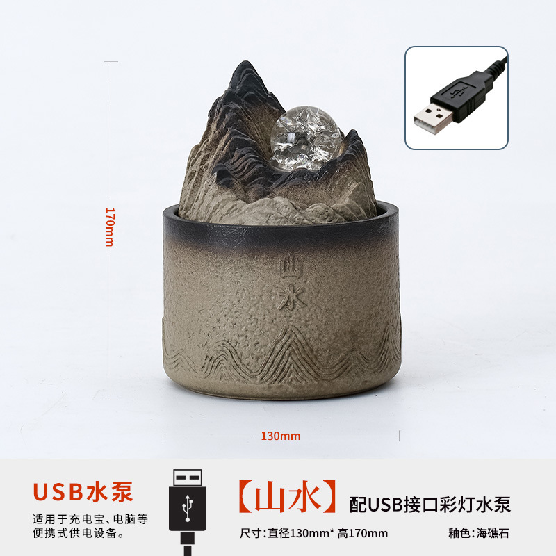 산수 도자기 물 분수 장식품, 다실 차탁용, 선(禪) 스타일 인공석, 행운의 공 분수, 수작업 도자기