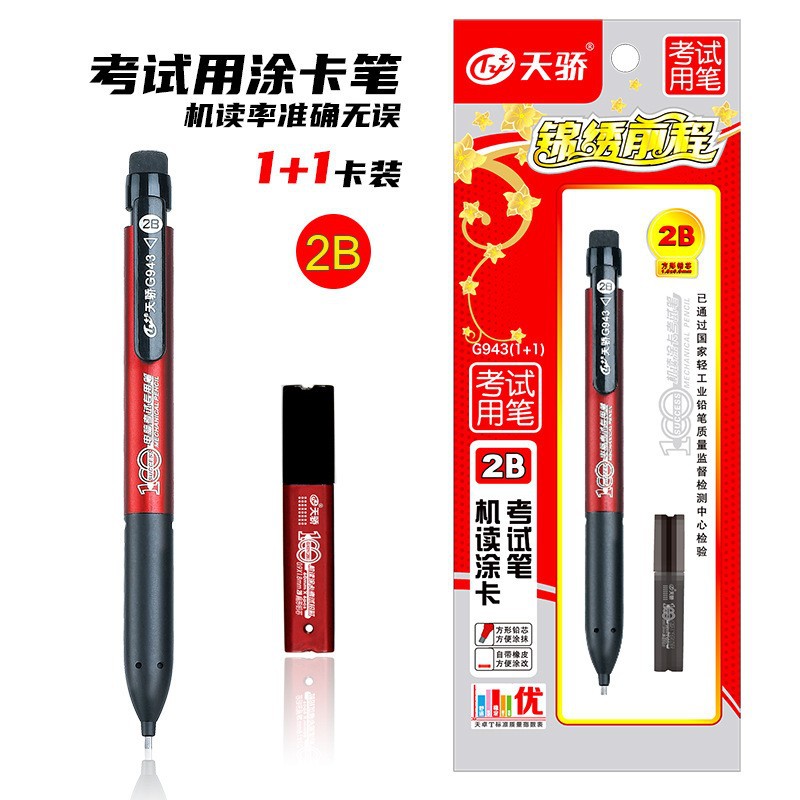 정품 Tianjiao G943 컴퓨터 시험 특수 펜 2B 사각 납 코팅 카드 펜 시험 2B 샤프 연필 도매스토어 가기