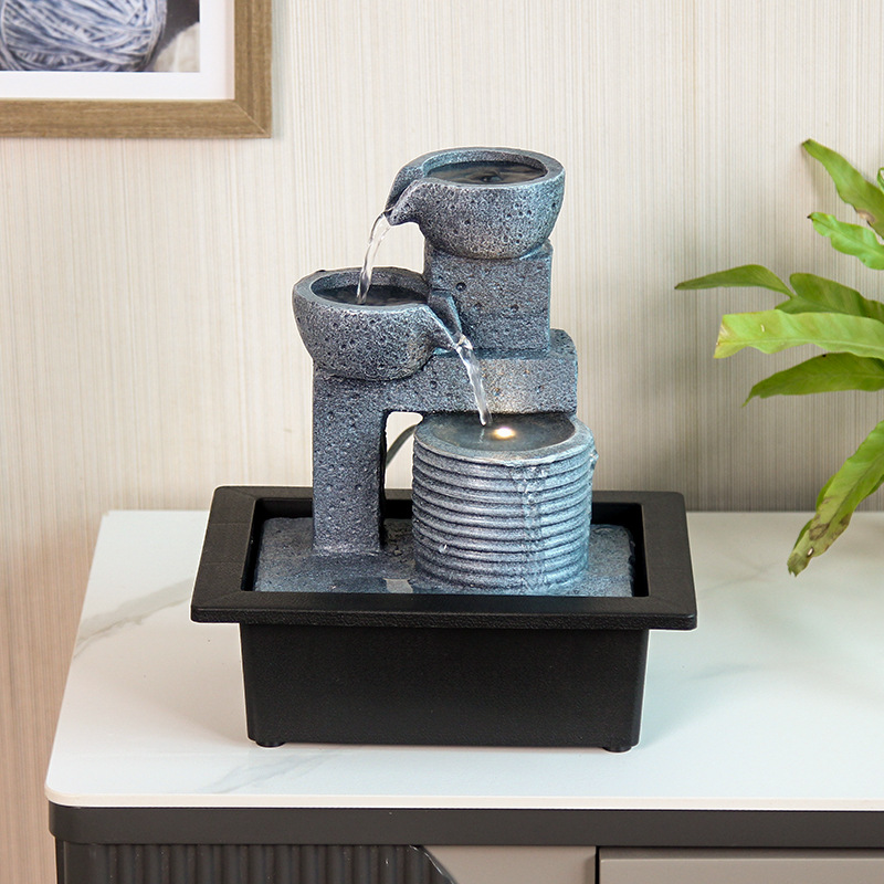 국경 간 거실 사무실 데스크탑 작은 분수 부와 흐르는 물 장식품 조경 장식 공예 선물