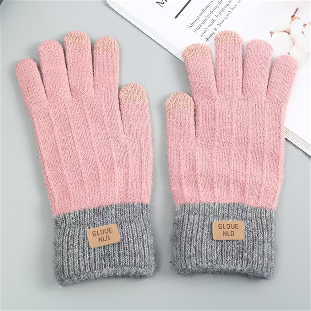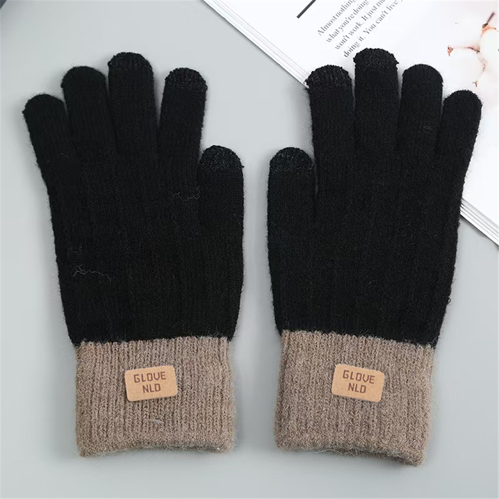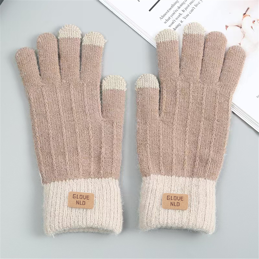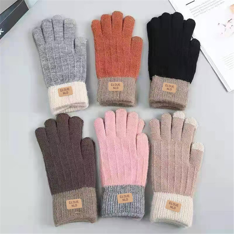 알파카 모사 보온 장갑 겨울 자카드 플러시 장갑 손가락별 터치스크린 장갑 크로스보더 장갑 가죽 라벨 두꺼운 장갑