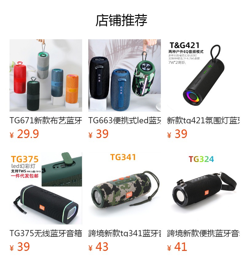 크로스 보더 새로운 TG227 방수 블루투스 스피커 카드 휴대용 led 블루투스 오디오 크리에이티브 선물 fm 소형 스피커스토어 가기