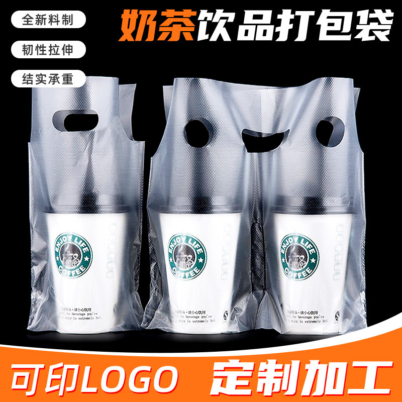 투명 우유 티백 일회용 포장 백 농축 우유 티백 테이크 아웃 음료 커피 싱글 및 더블 컵 백 100스토어 가기