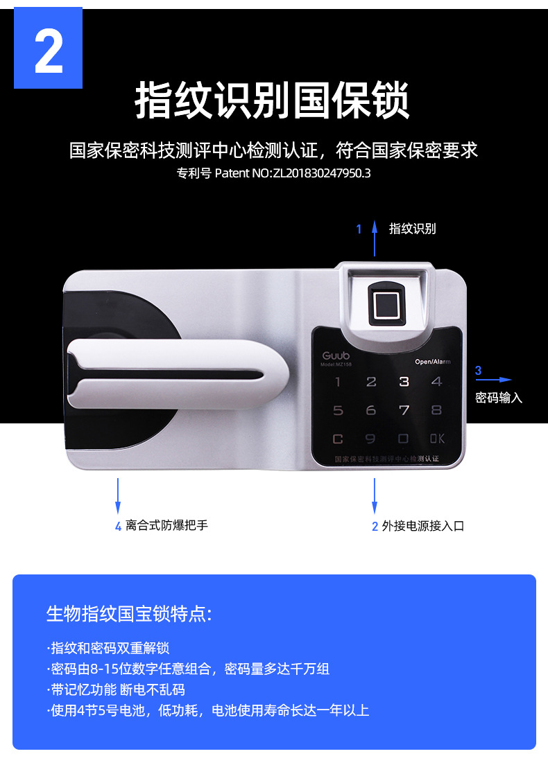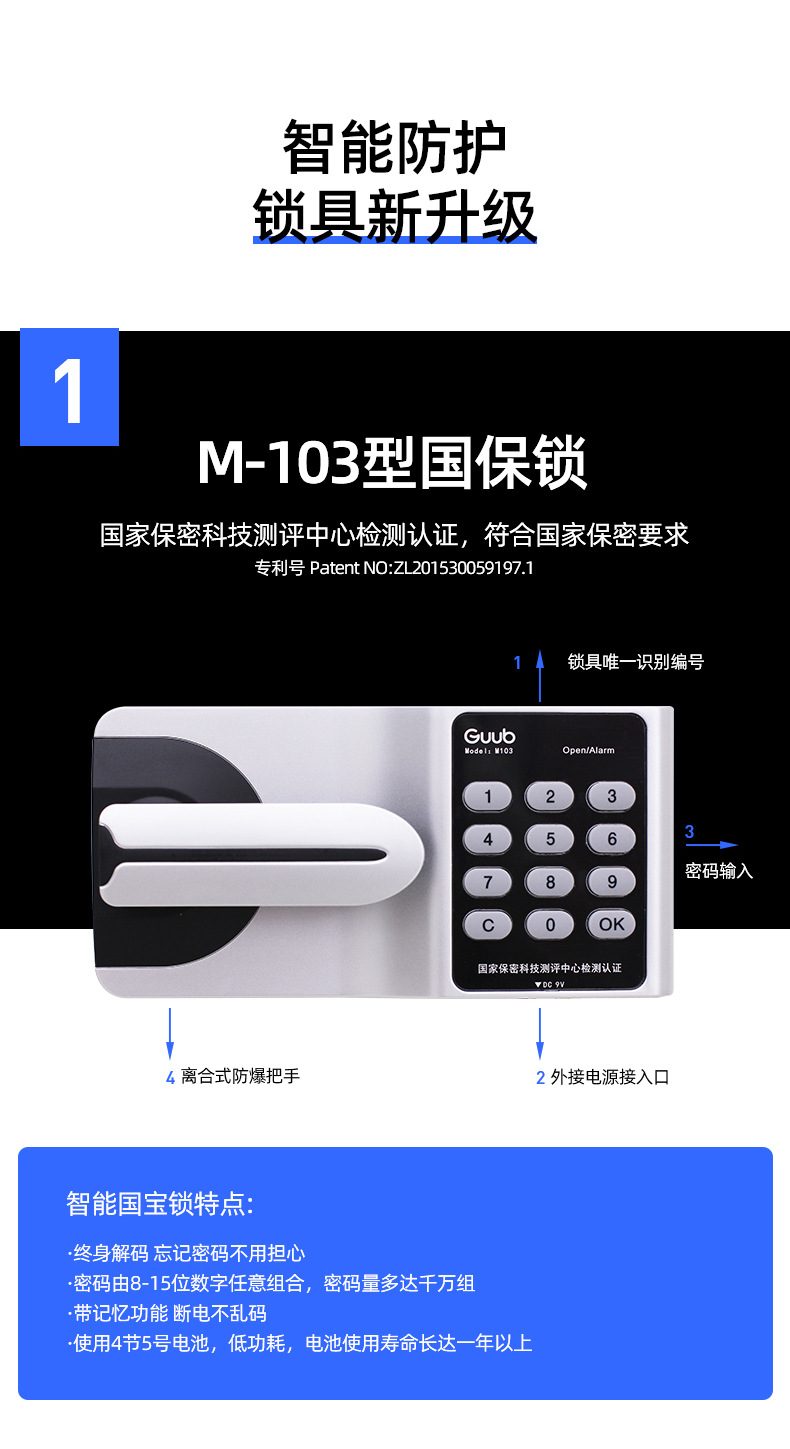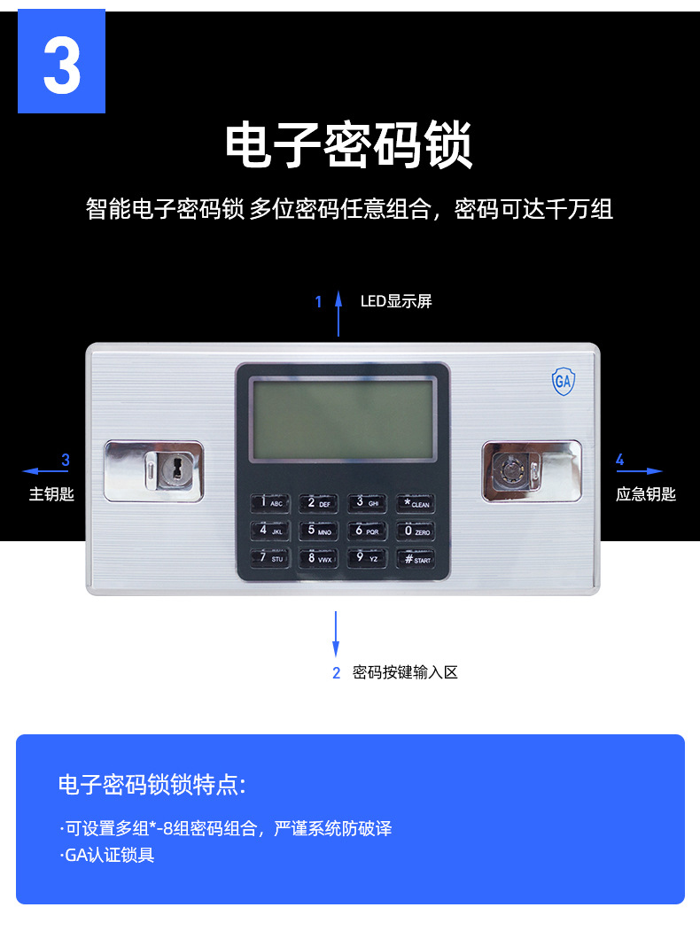 • 더블 섹션 블루와 화이트 통과 (전자 콤비네이션 잠금 장치)