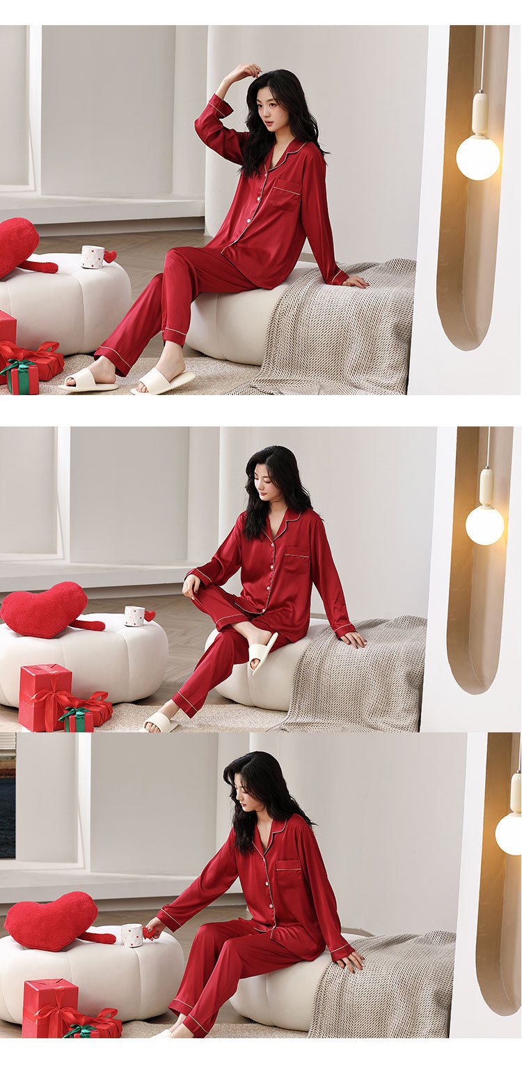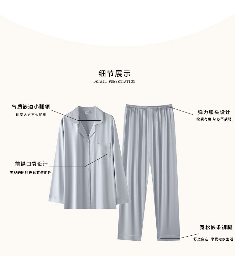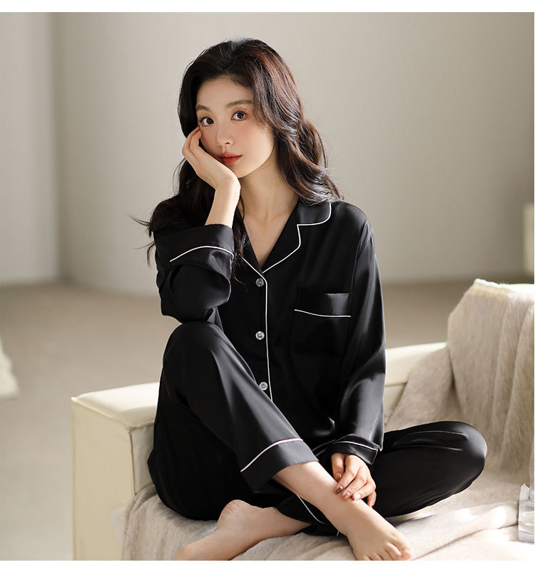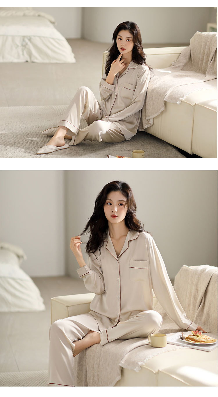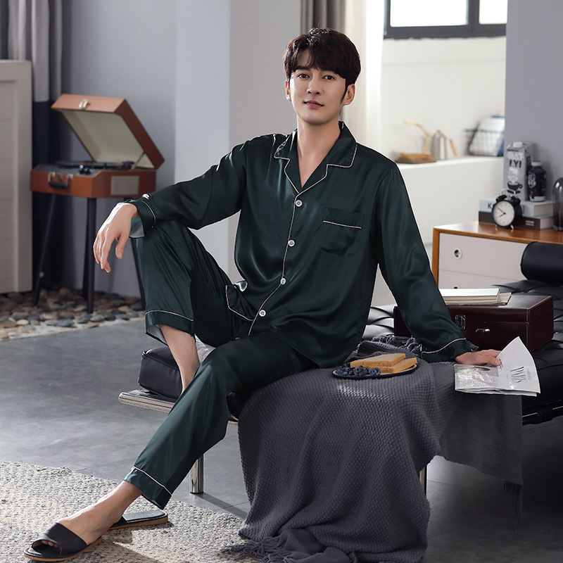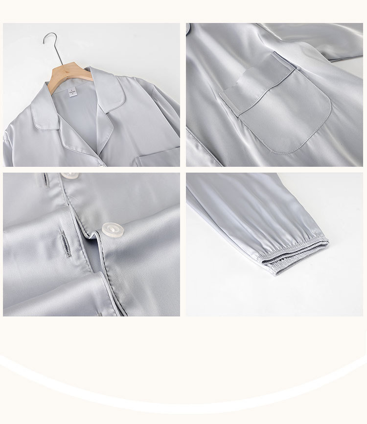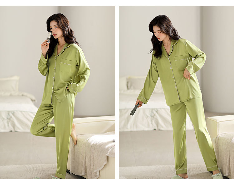 한 Yatong 새틴 아이스 실크 여자의 긴 소매 바지 봄과 여름 단색 가정 옷 세트 남자의 가을 잠옷 새로운스토어 가기