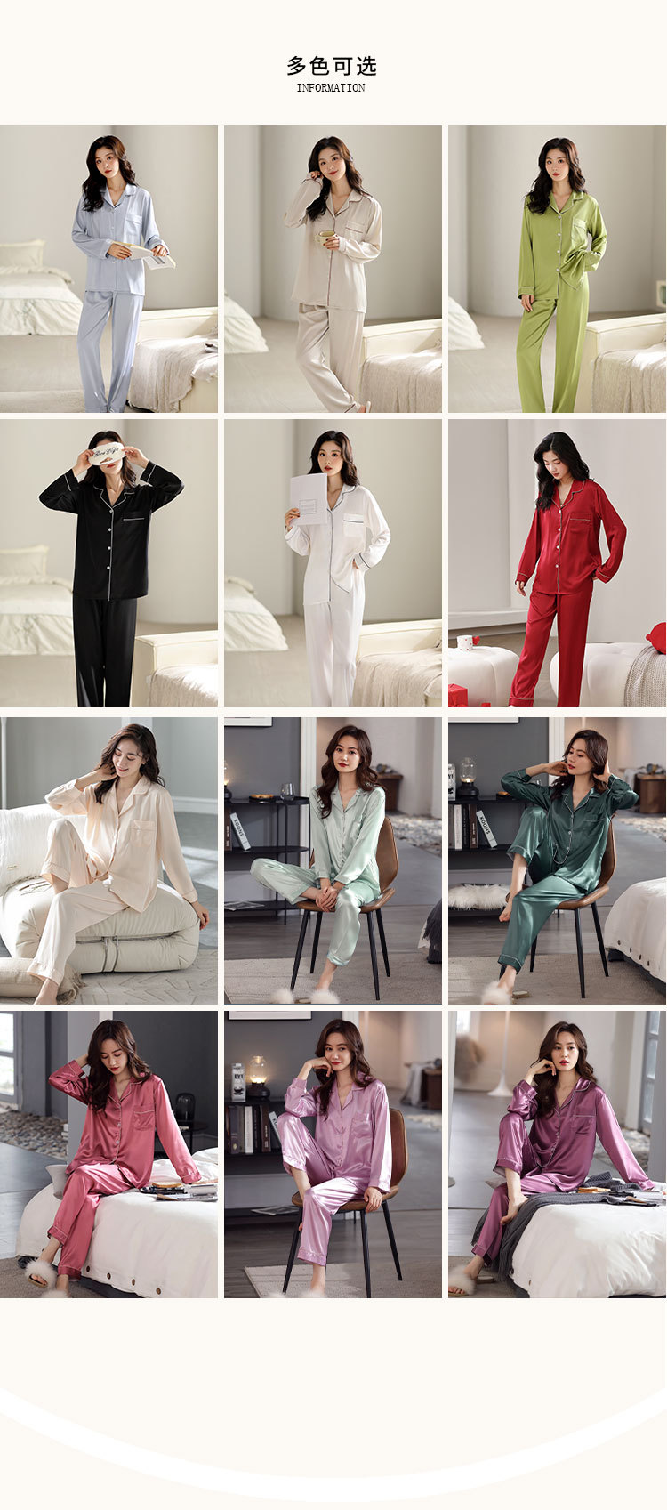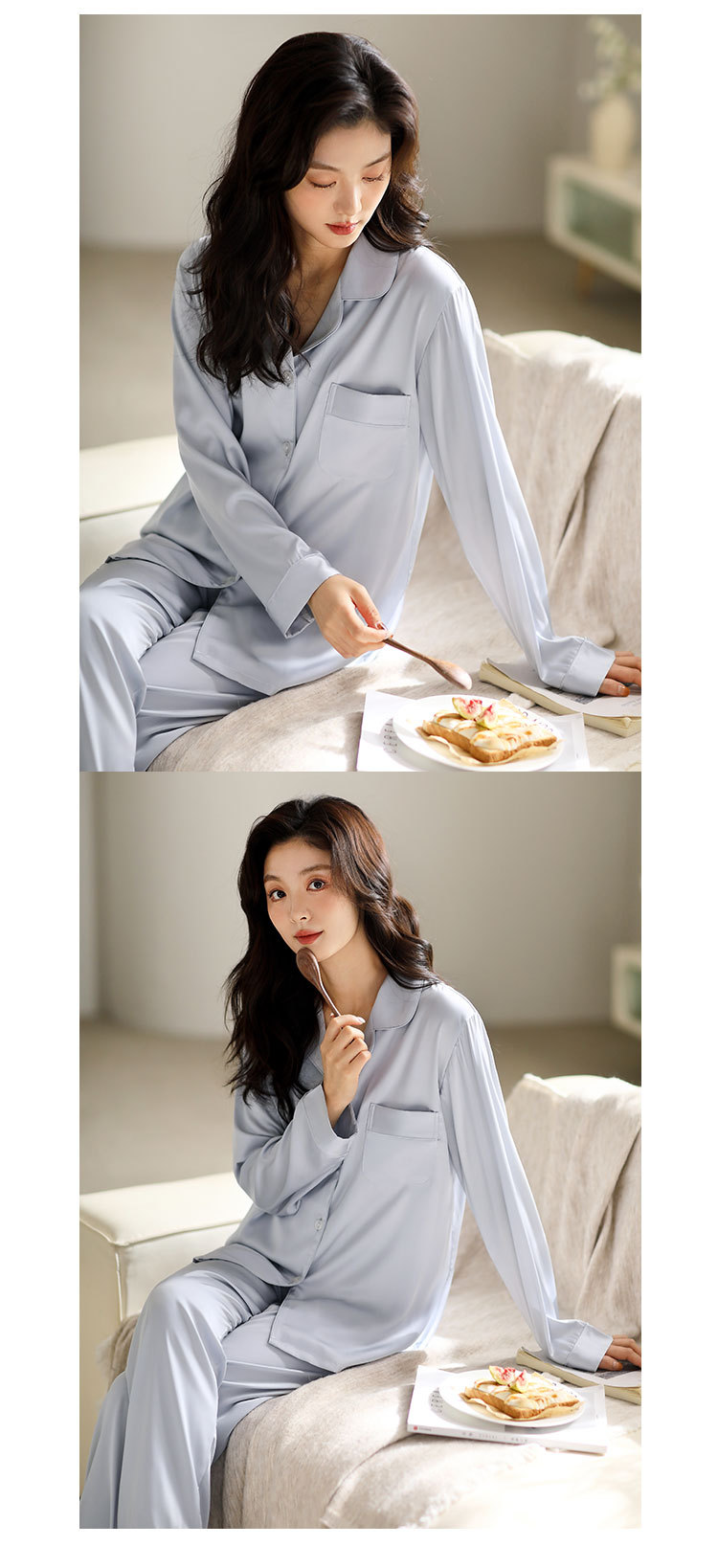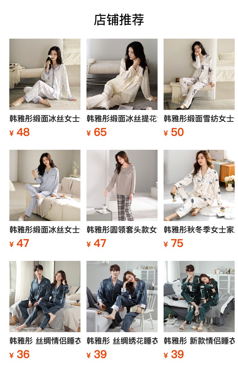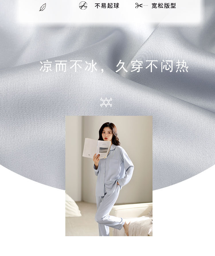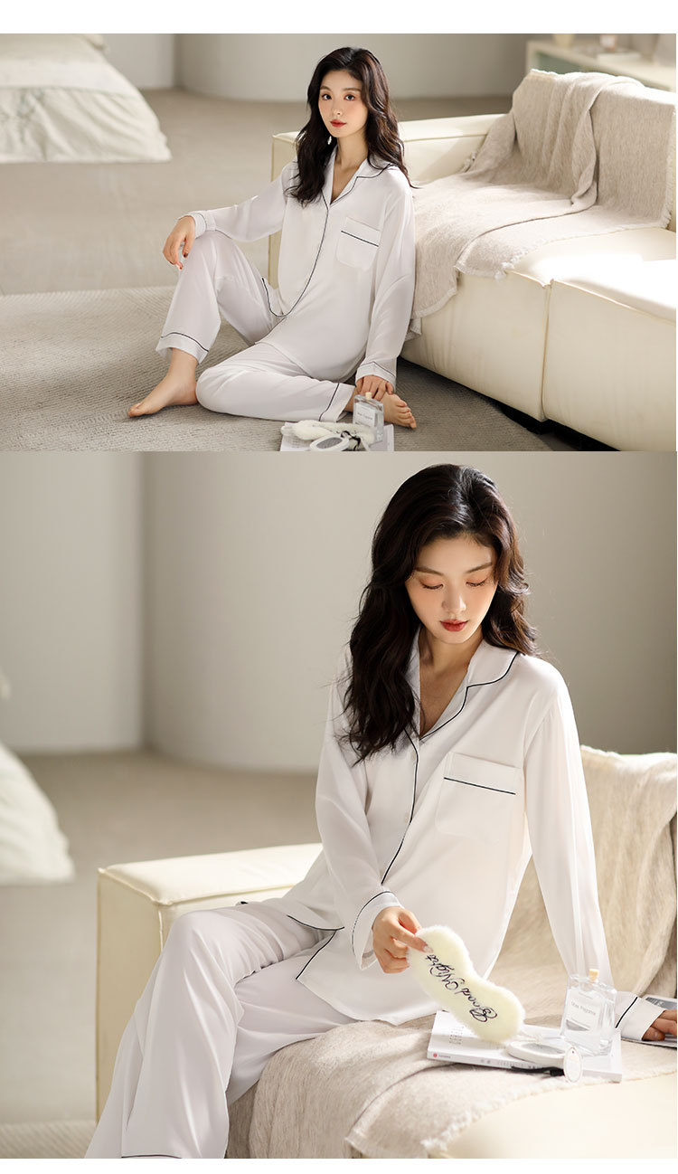 한 Yatong 새틴 아이스 실크 여자의 긴 소매 바지 봄과 여름 단색 가정 옷 세트 남자의 가을 잠옷 새로운스토어 가기