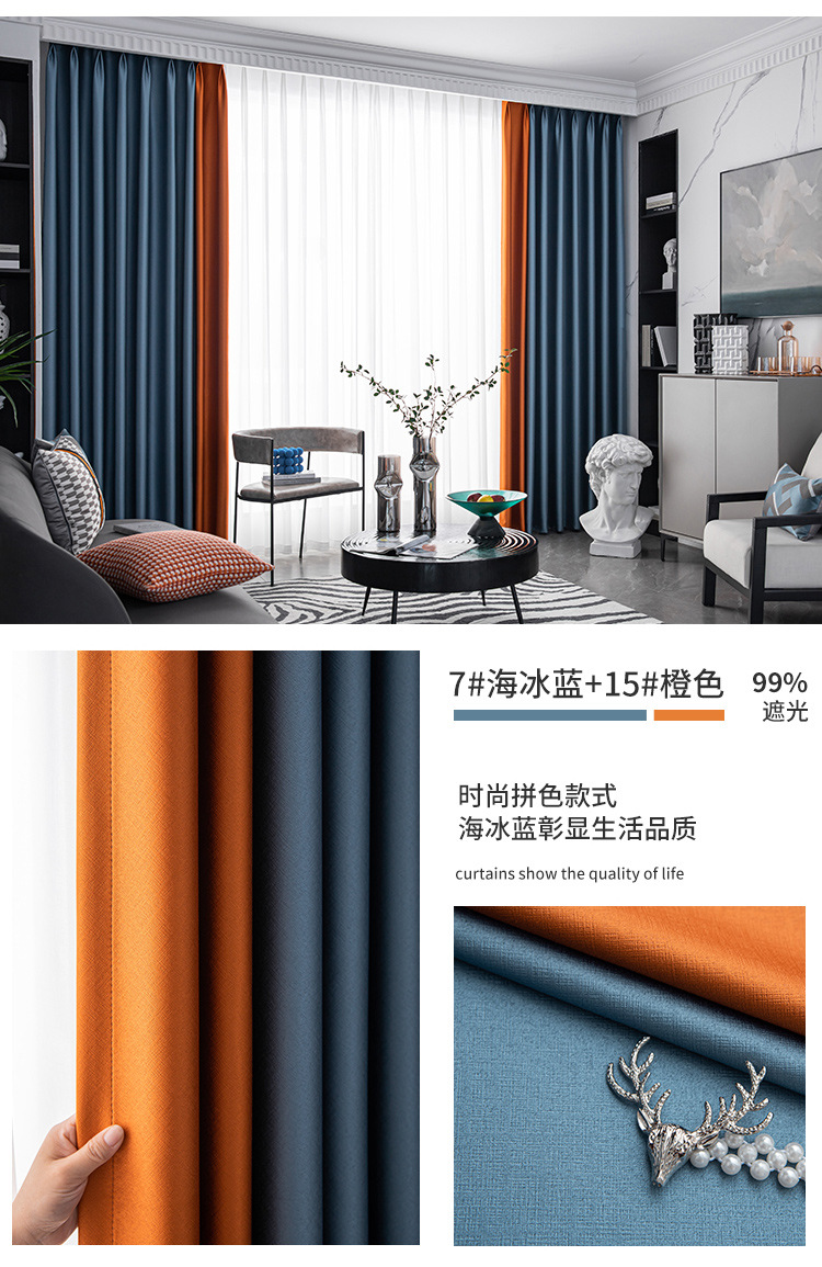 커튼 완전 차광, 단열, 자외선 차단, 프라하 커튼 원단, 차양 원단, 심플한 단색, 모던 침실 거실용, 원사 염색