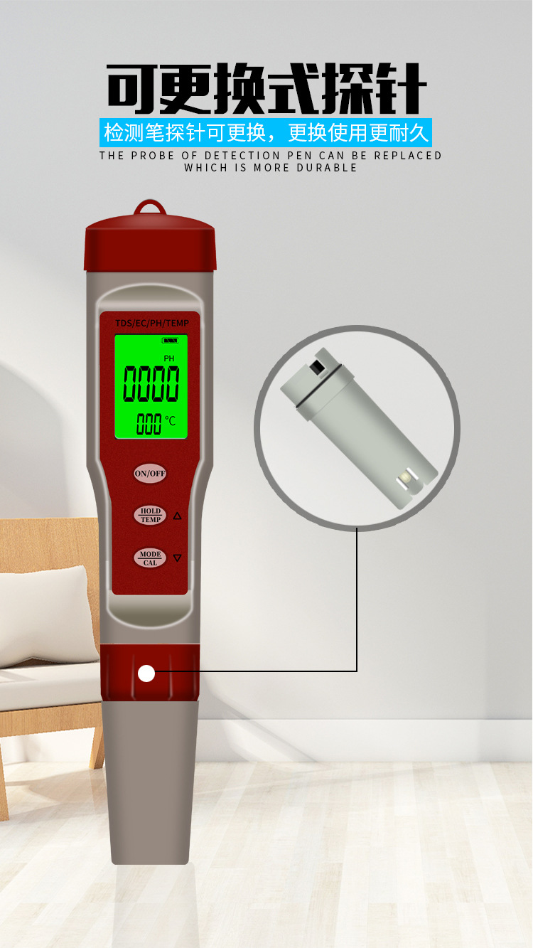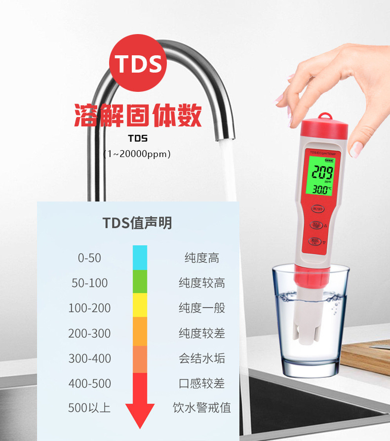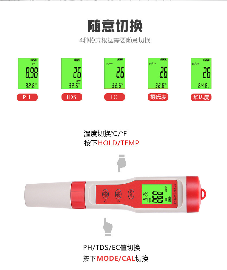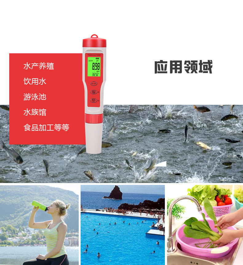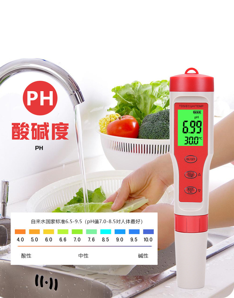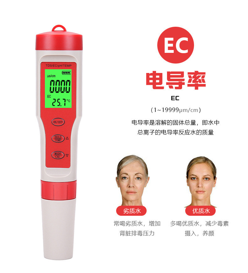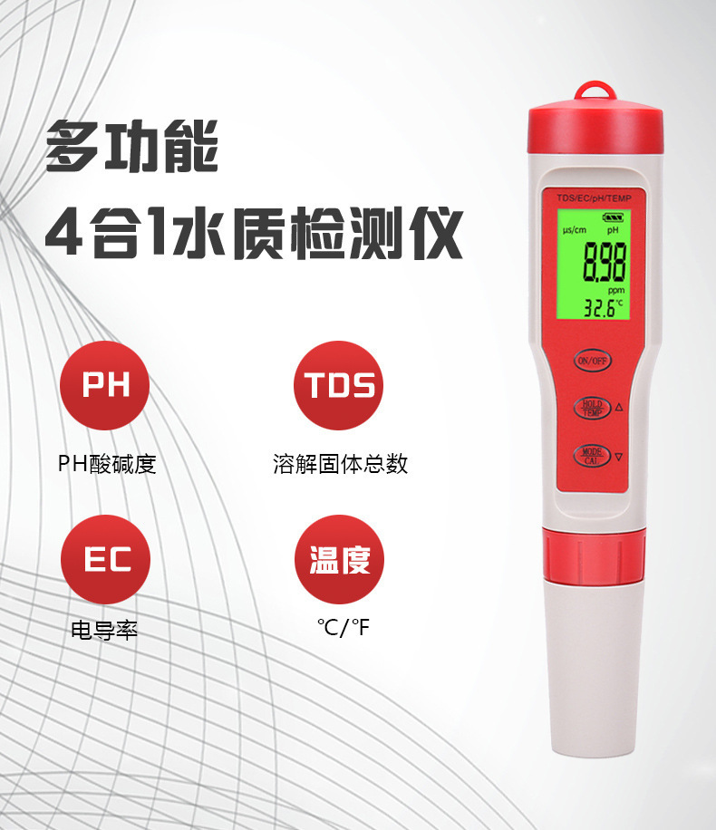 Tds 펜 EC 전도성 H2 수소가 풍부한 ORP 음의 전위 PH 산-염기 염분 미터 저항 계기 테이블