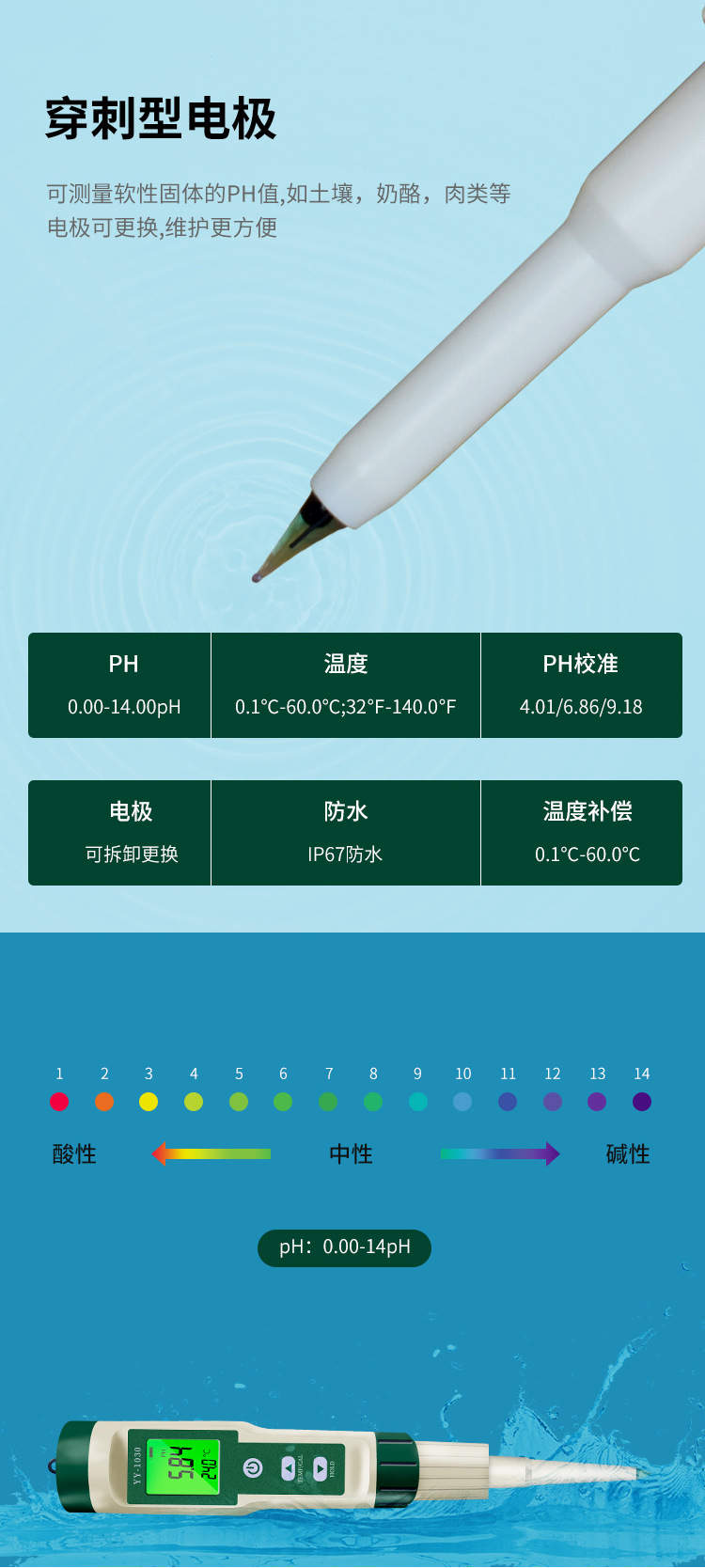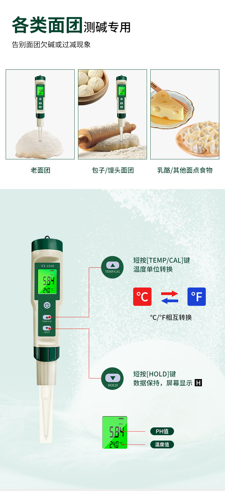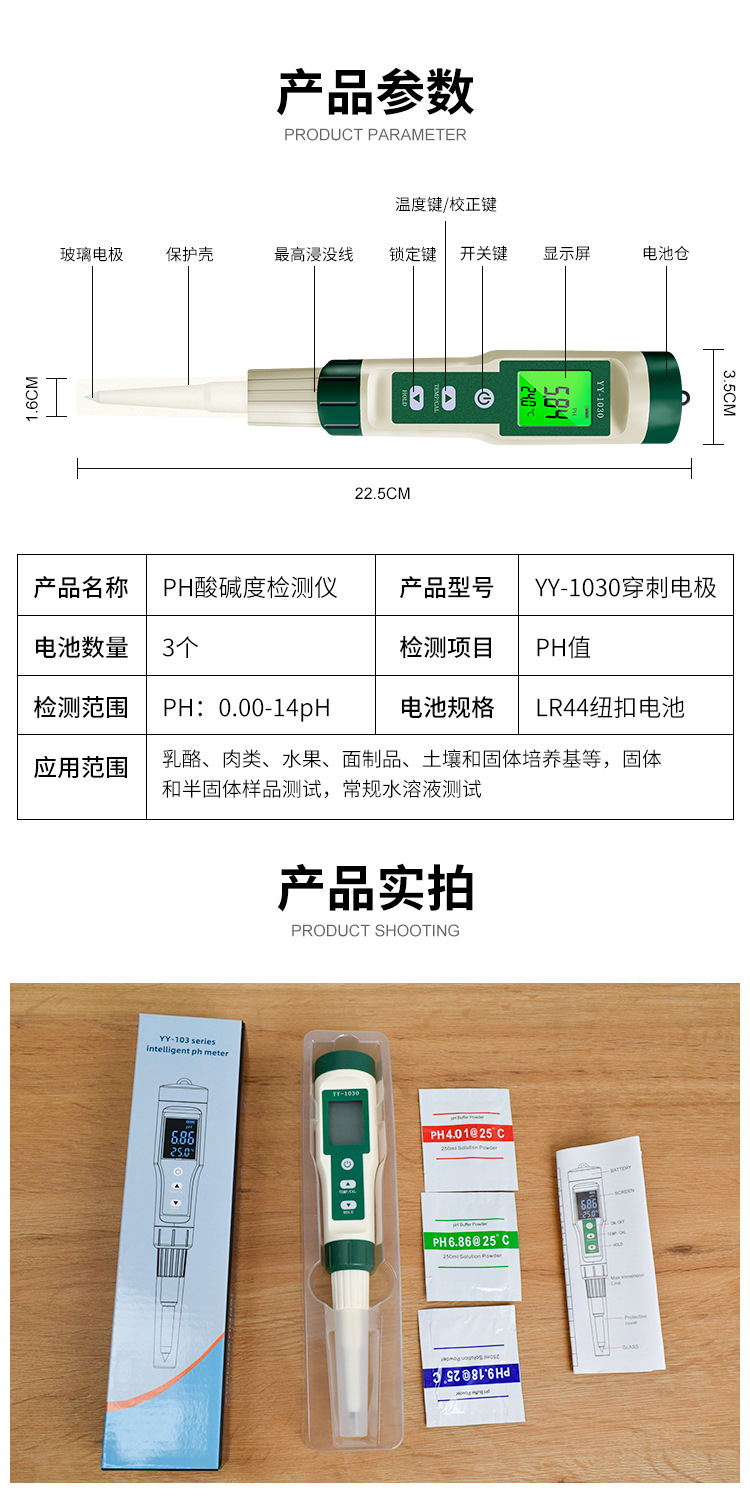 • 백라이트 YY-1030 반죽 pH 측정기