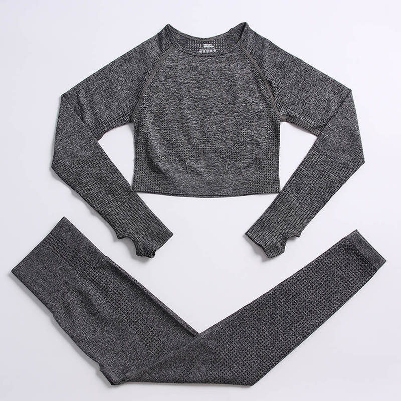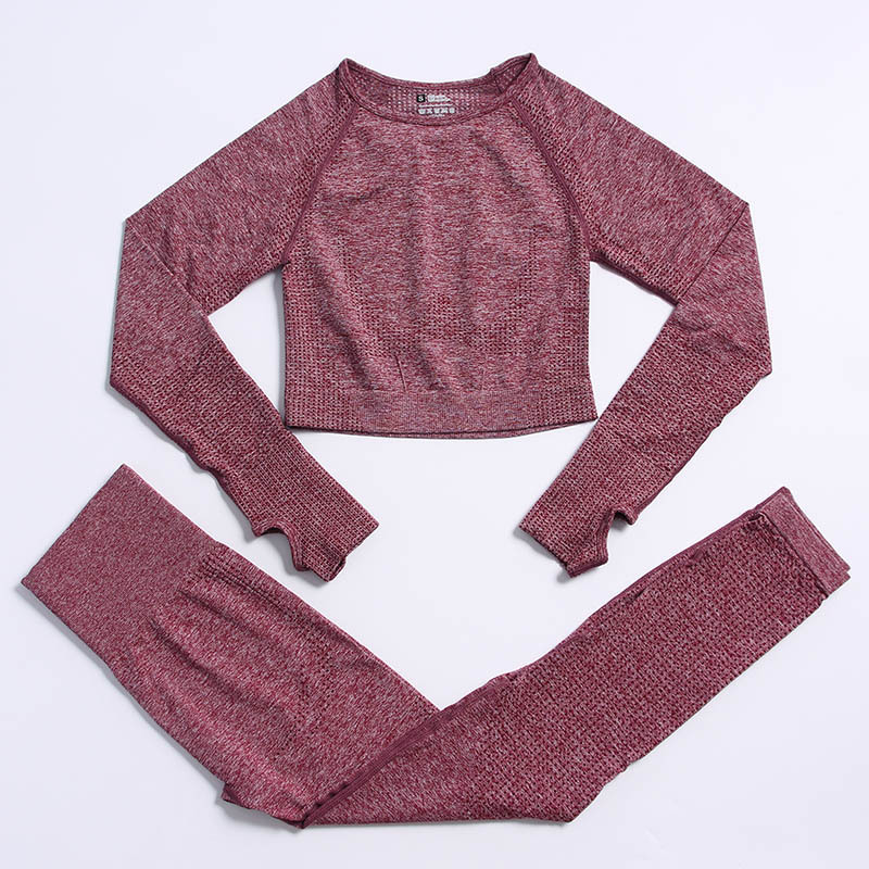 아마존 크로스 보더 요가 의류 긴팔 도트 원활한 타이트 핏 스포츠웨어 여성의 하이 스트레치 러닝 피트니스 의류 세트