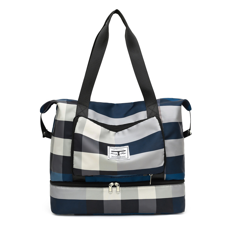 여성용 접이식 여행 가방, 건식 및 습식 분리, 독립 신발 수납 공간, 옥스포드 천 줄무늬 스포츠 피트니스 가방 커버, 트롤리 수하물 가방스토어 가기
