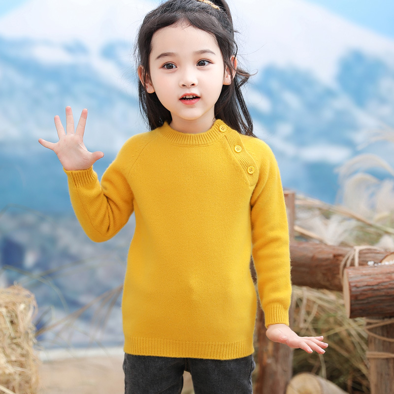 어린이 울 가디건 소년 소녀 라운드 넥 가을과 겨울 새로운 아기 100 순수 울 삽입 버튼 두꺼운 스웨터
