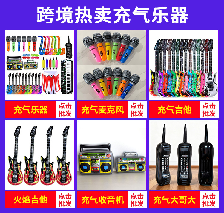 本厂所生产的把有PVC充气乐器产品都是采用PVC材料加工,可以通过欧美的检测。机器印刷,图案精美,款式齐全,支持订制。