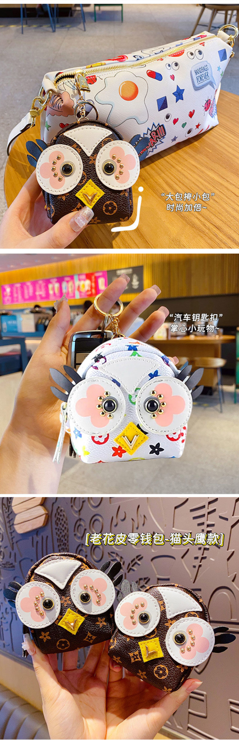 여성용 지갑 동전 지갑 올빼미 선물 동전 가방 열쇠 가방 화장품 클러치백 립스틱 수납 소형 가방 지퍼스토어 가기