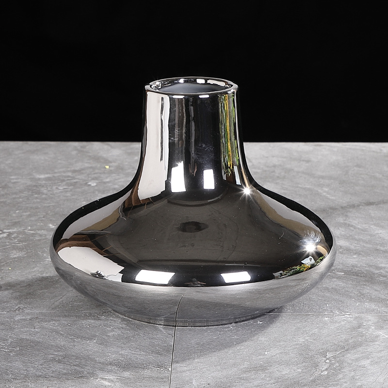 크리 에이 티브 전기 도금 실버 세라믹 꽃병 빛 럭셔리 거실 데스크탑 홈 말린 꽃 보석 공예 복도 장식품